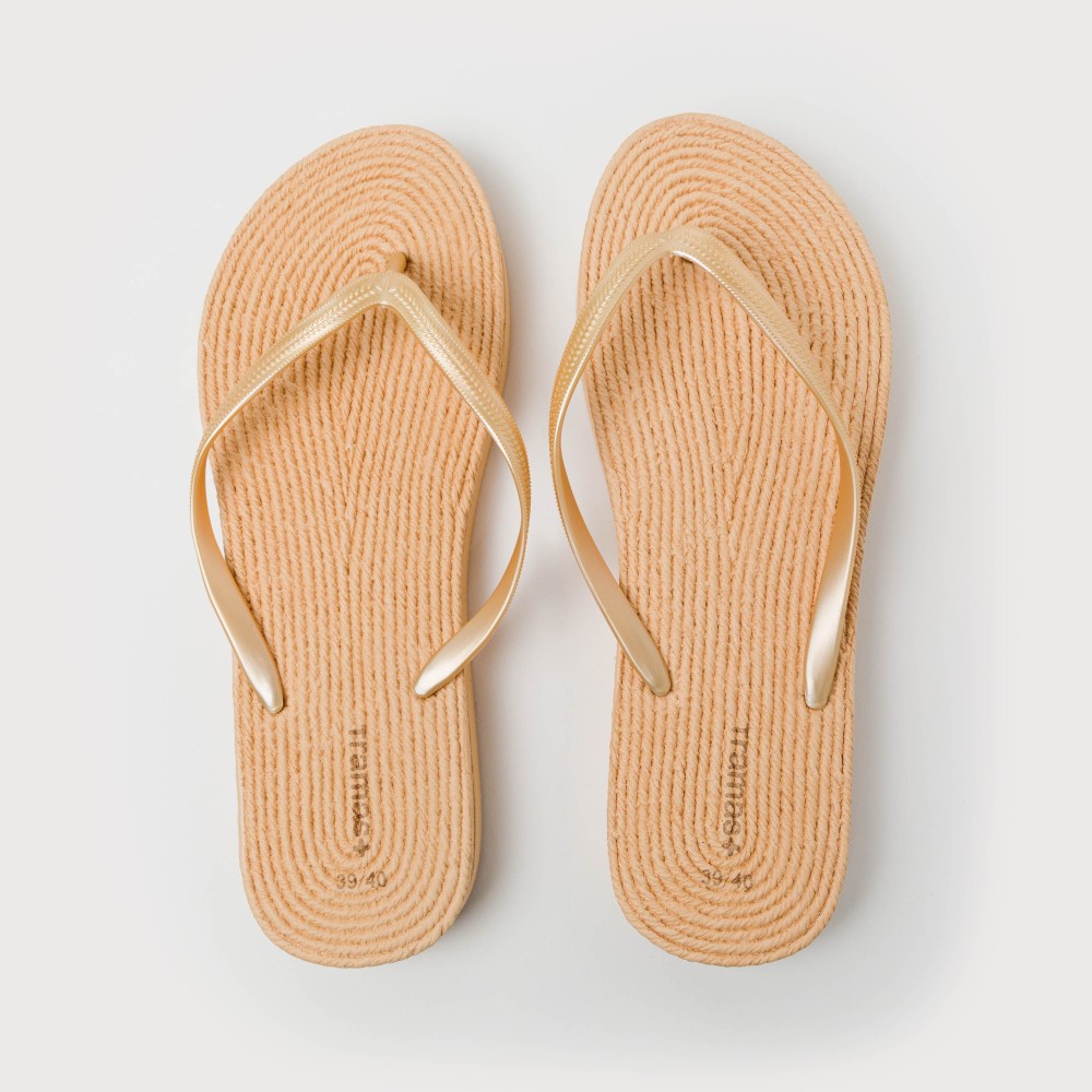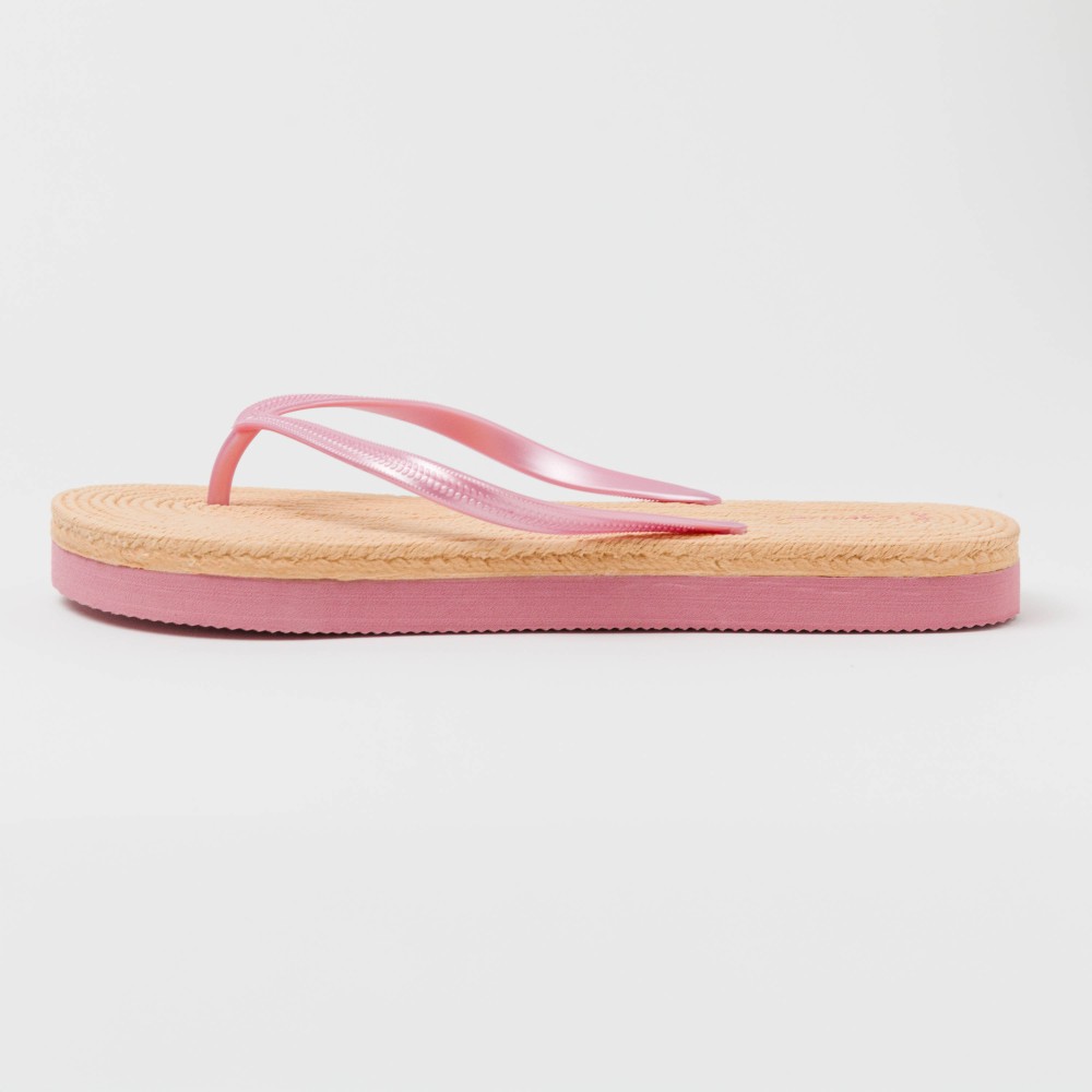 Las chanclas de verano son el complemento perfecto para ir a la playa o a la piscina, presenta un diseño de color natural imitando al trenzado del esparto y con tiras en pvc y suela de diferentes colores.