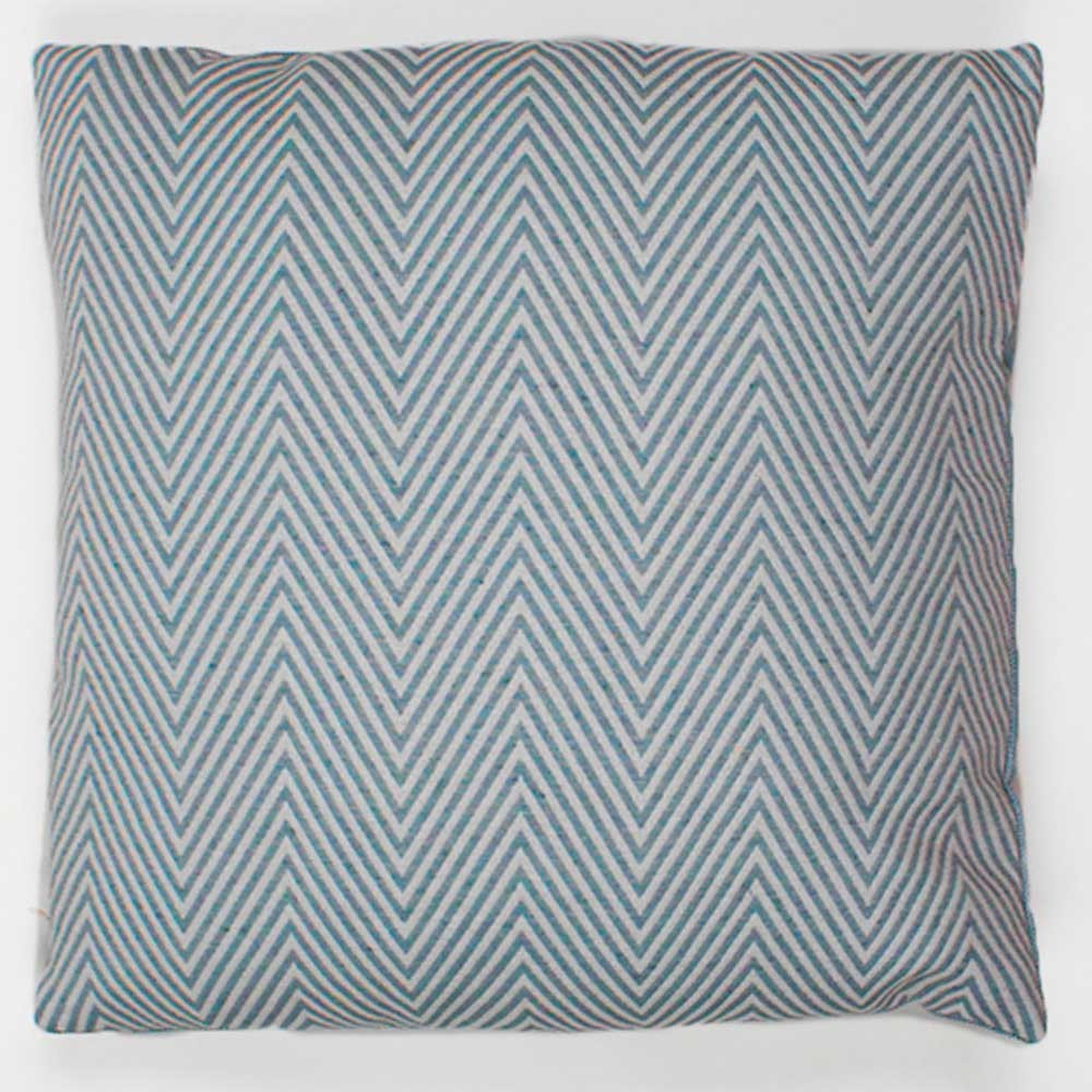 Diseño original y colorido con zigzags en tonos esmeralda sobre base de color blanco, la cara trasera es de color esmeralda liso.