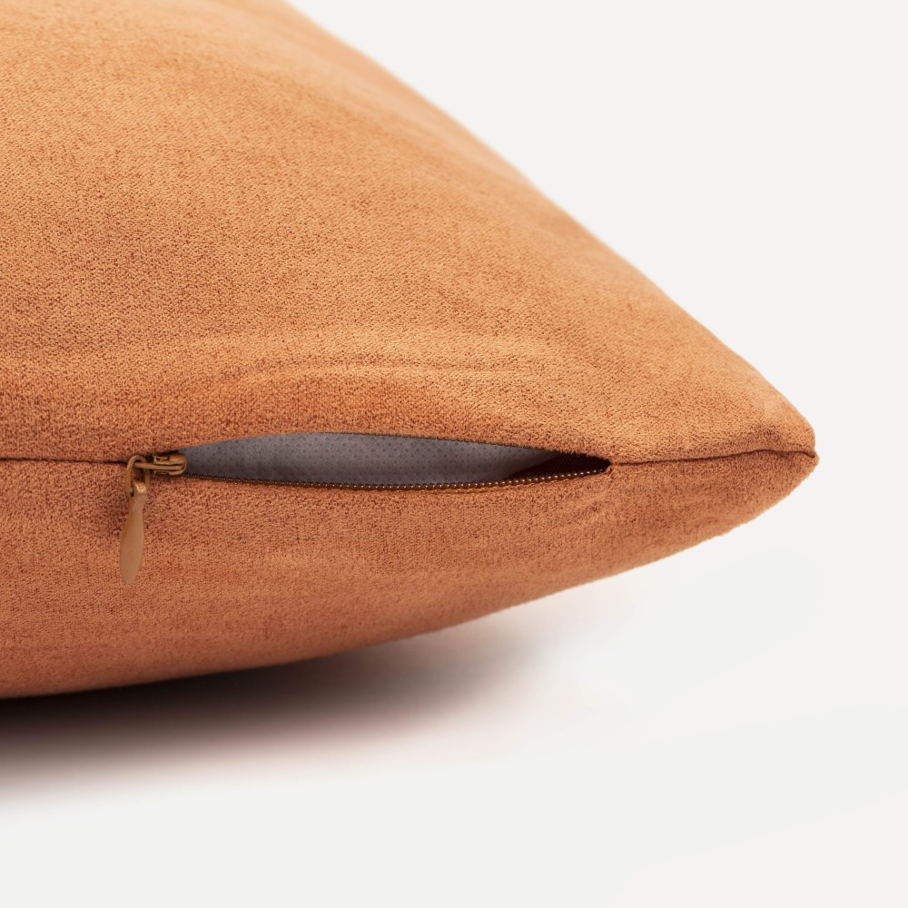 Presenta una textura de piel con tacto suave y fino con una cremallera invisible para poder sacar su relleno y lavar con facilidad.