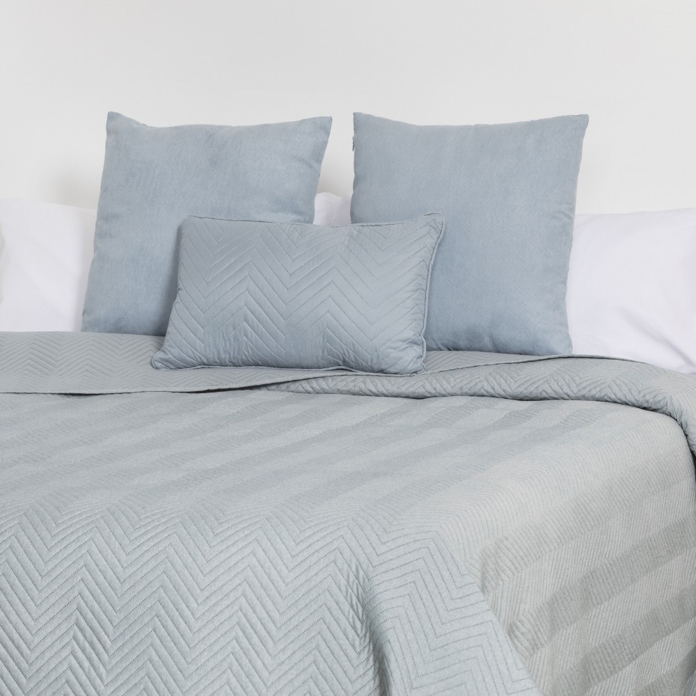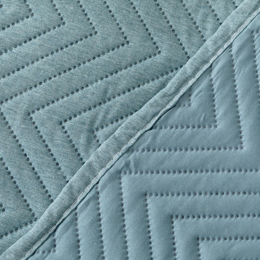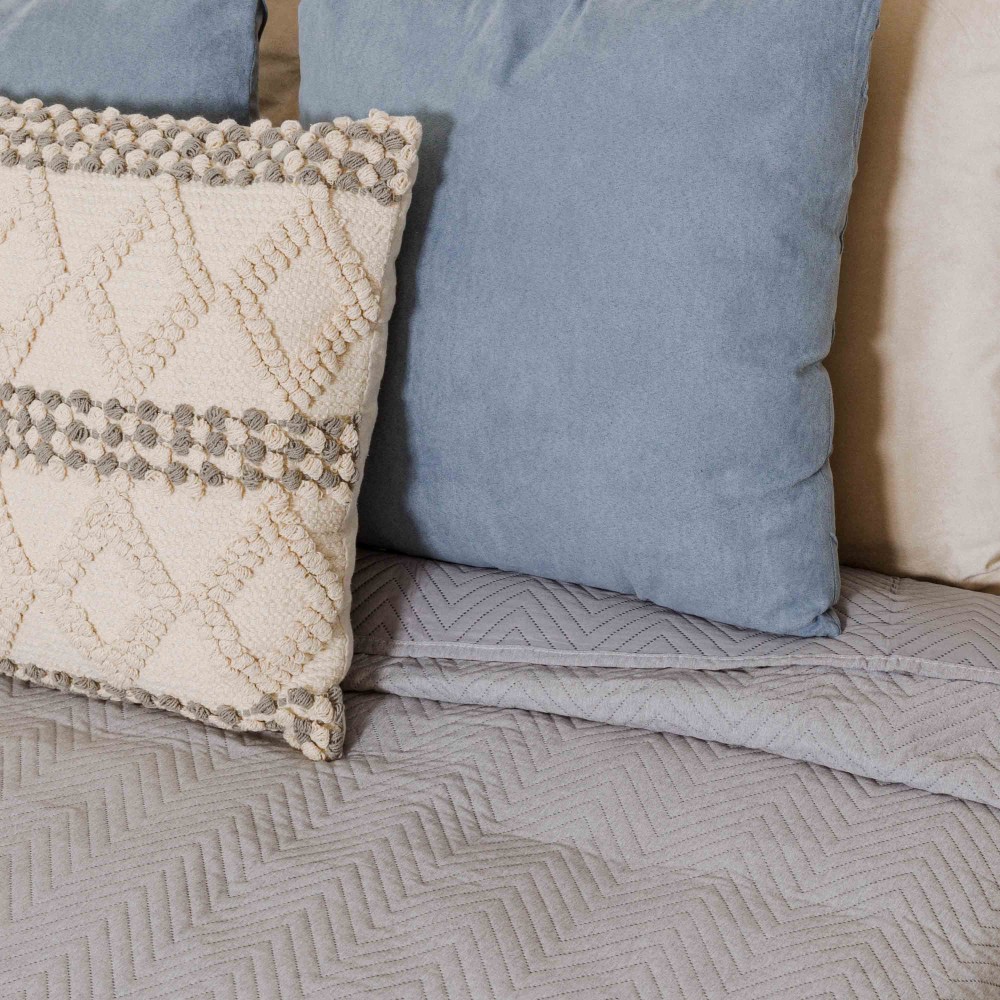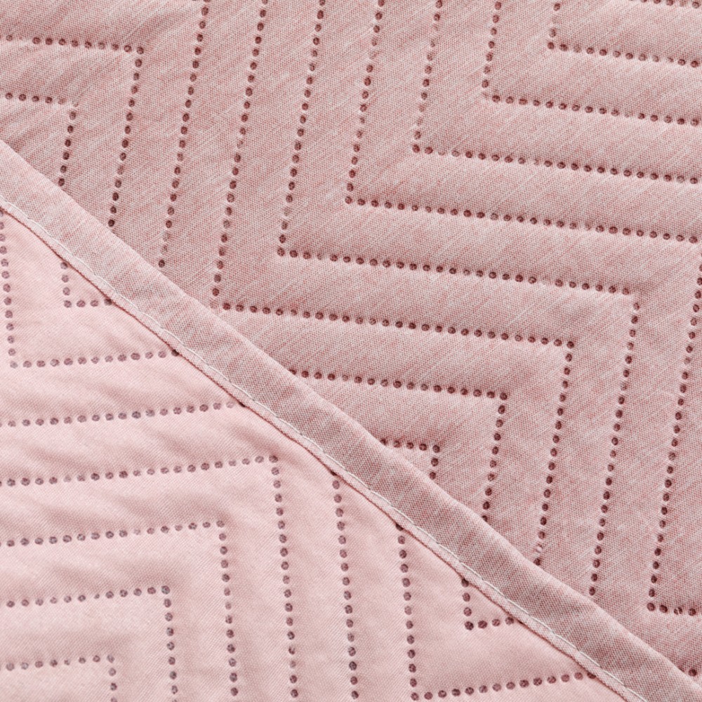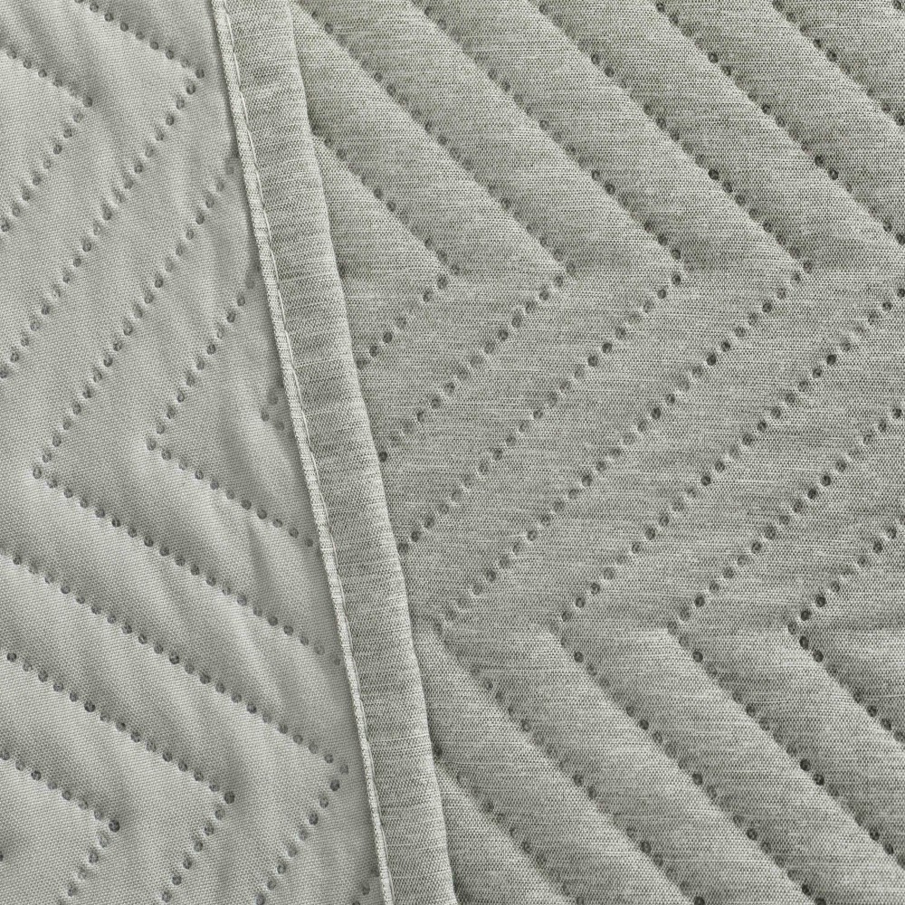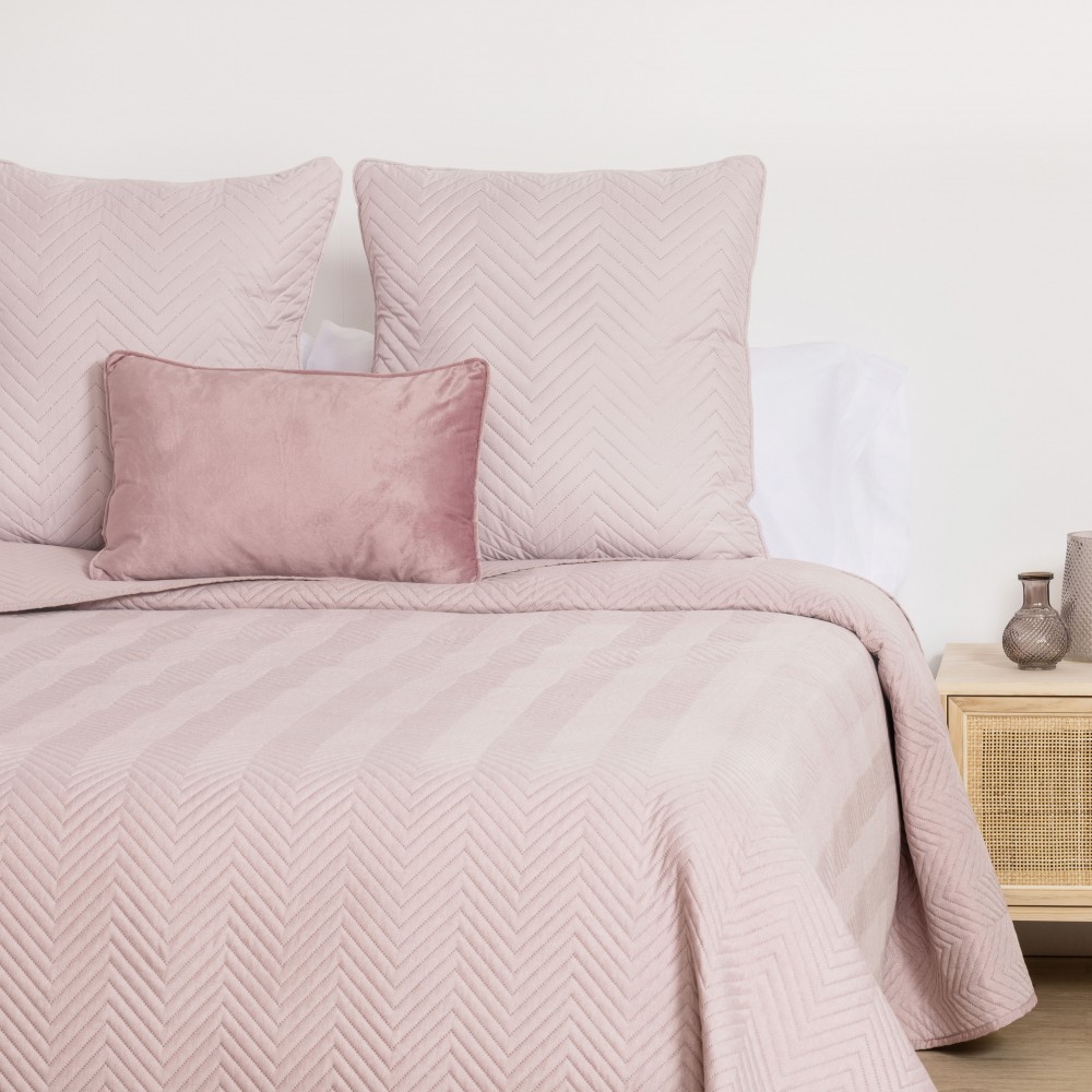 Su diseño es innovador y elegante con un pespunteado de zigzag sobre un fondo de estilo desgastado en la cara delantera, la cara trasera presenta el mismo diseño pero de color liso sencillo. El acabado de la colcha es recto con ribete bies del mismo tono, un modelo ideal para vestir tu cama en los meses de entretiempo de primavera y verano.