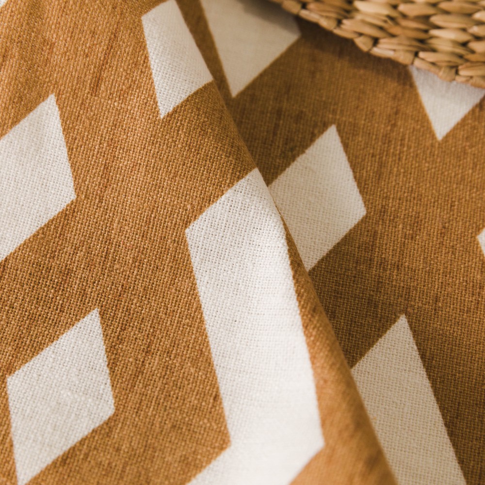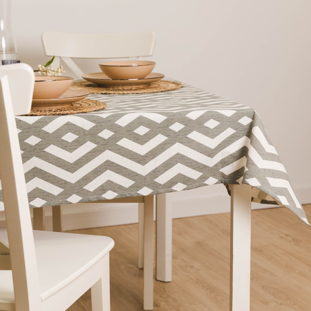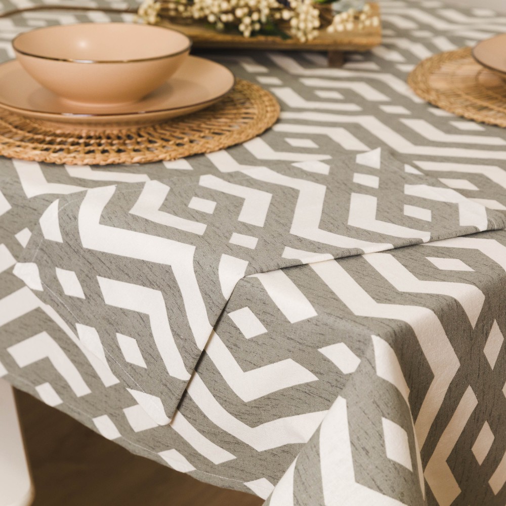 Cuenta con un estampado de rombos entrelazados sobre un fondo blanco. El complemento que no puede faltar, para dar el toque de elegancia a la vez que dar protección de las posibles salpicaduras.