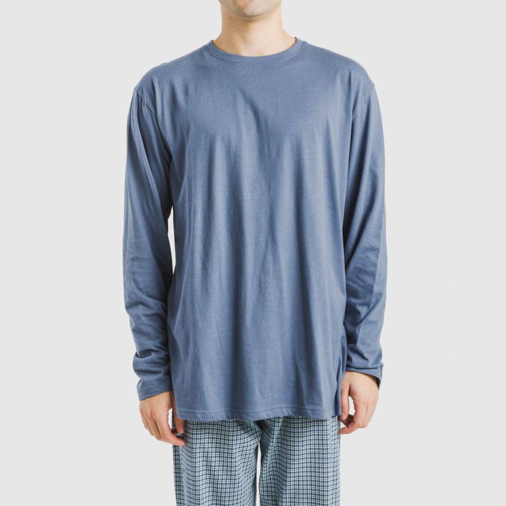 Pijama de hombre compuesto por camiseta de manga larga y pantalón largo modelo Cuadro Kike azul.