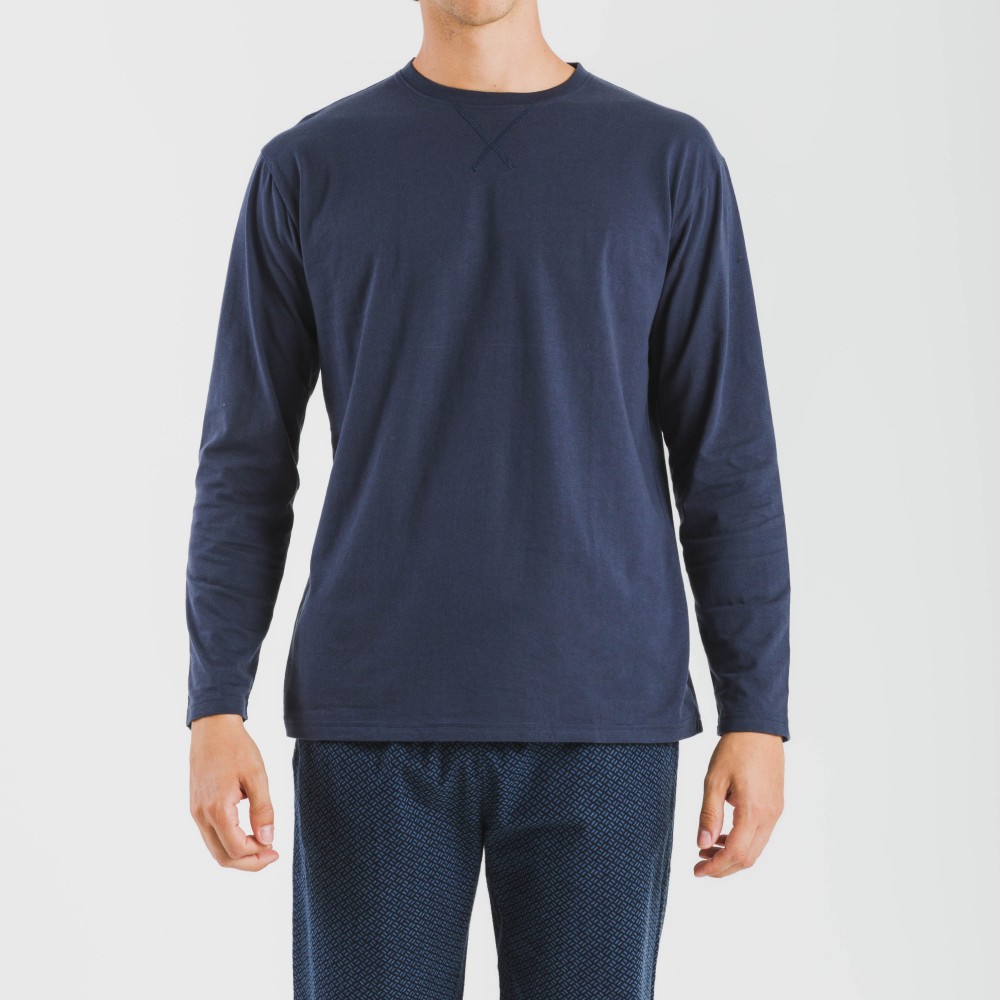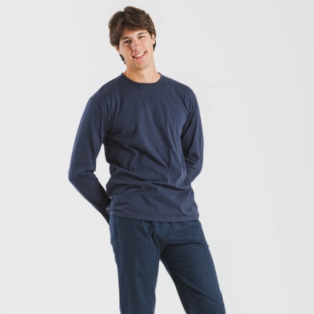 Pijama de hombre compuesto por camiseta de manga larga y pantalón largo de franela.