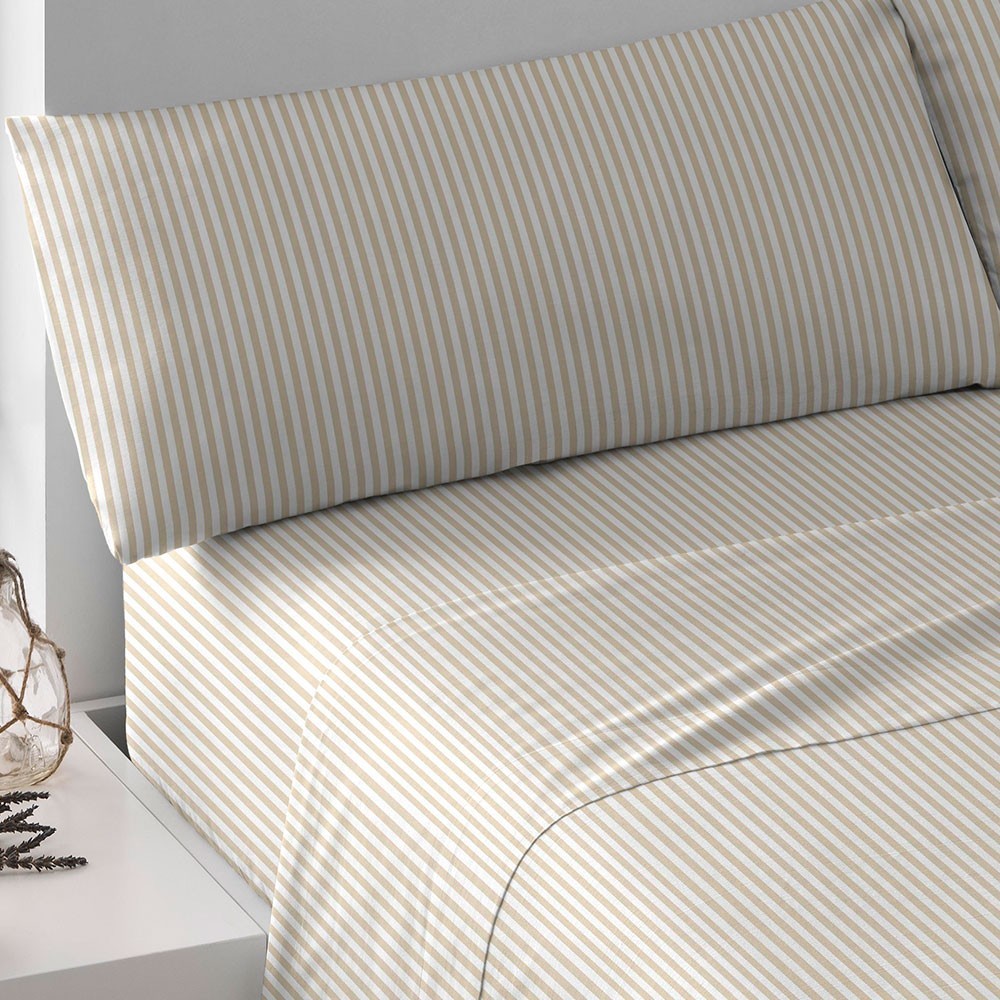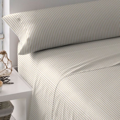Juego de sábanas 100% algodón modelo Raya Kodac arena.