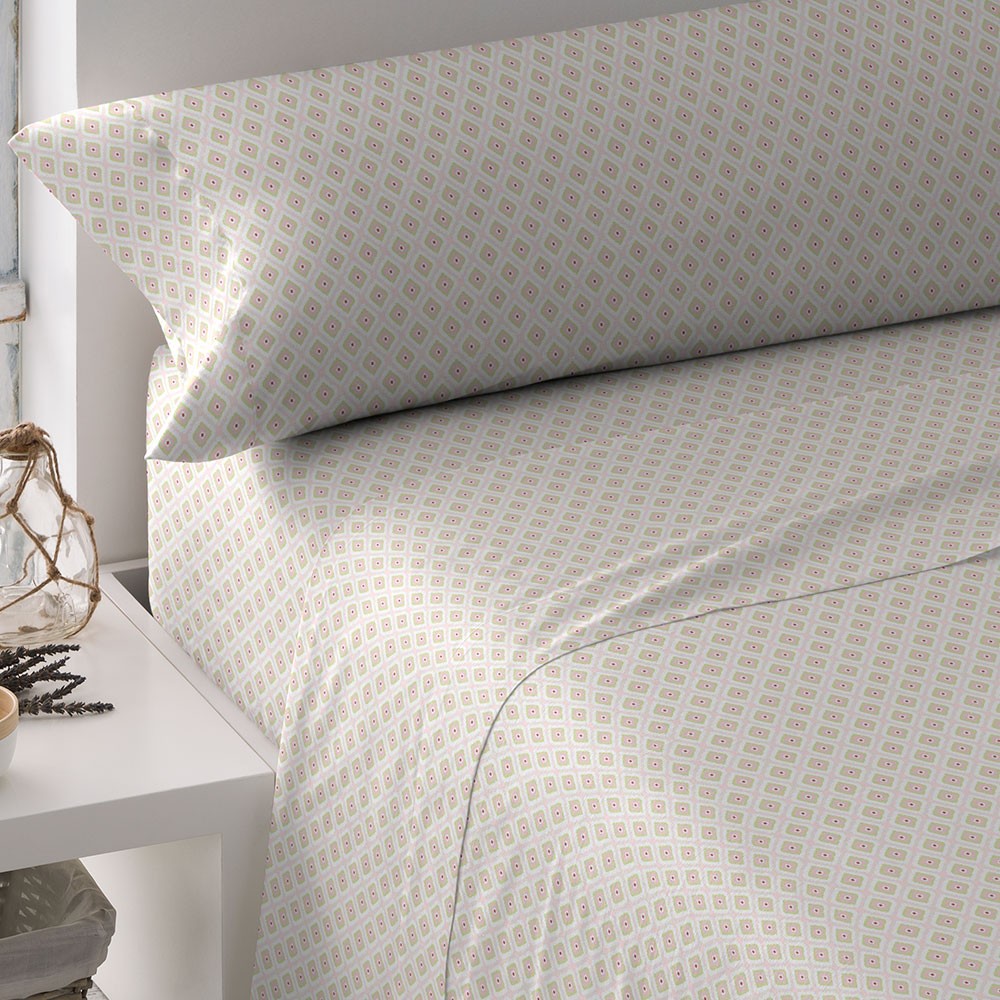 - Cama 90: 1 sábana encimera: 165 x 270 cm, 1 sábana bajera: 90 x 200 + 25 cm y 1 funda de almohada: 110 x 45 cm