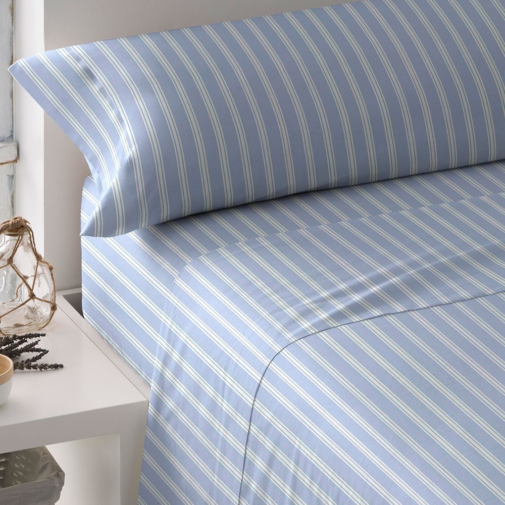 Juego de sábanas 100% algodón percal modelo Raya Marsella índigo de 180 hilos.