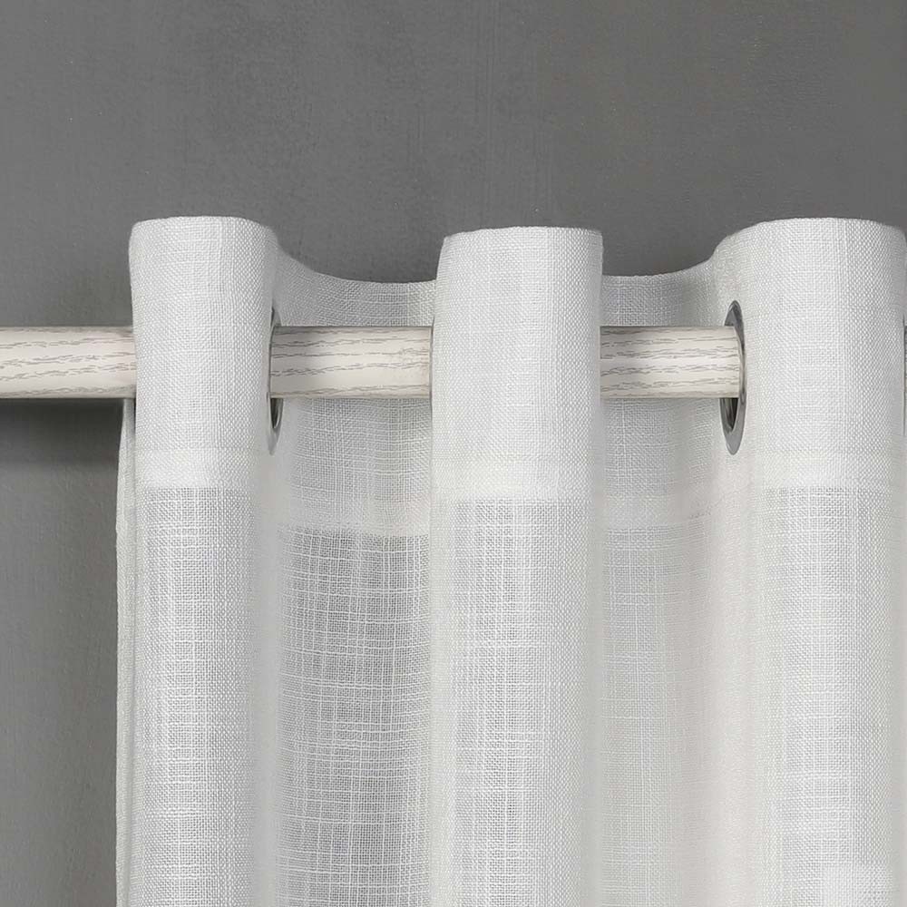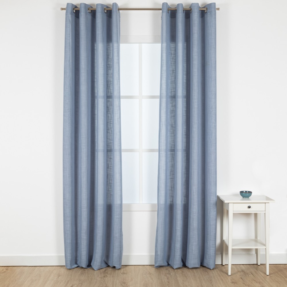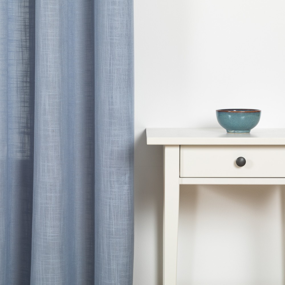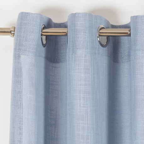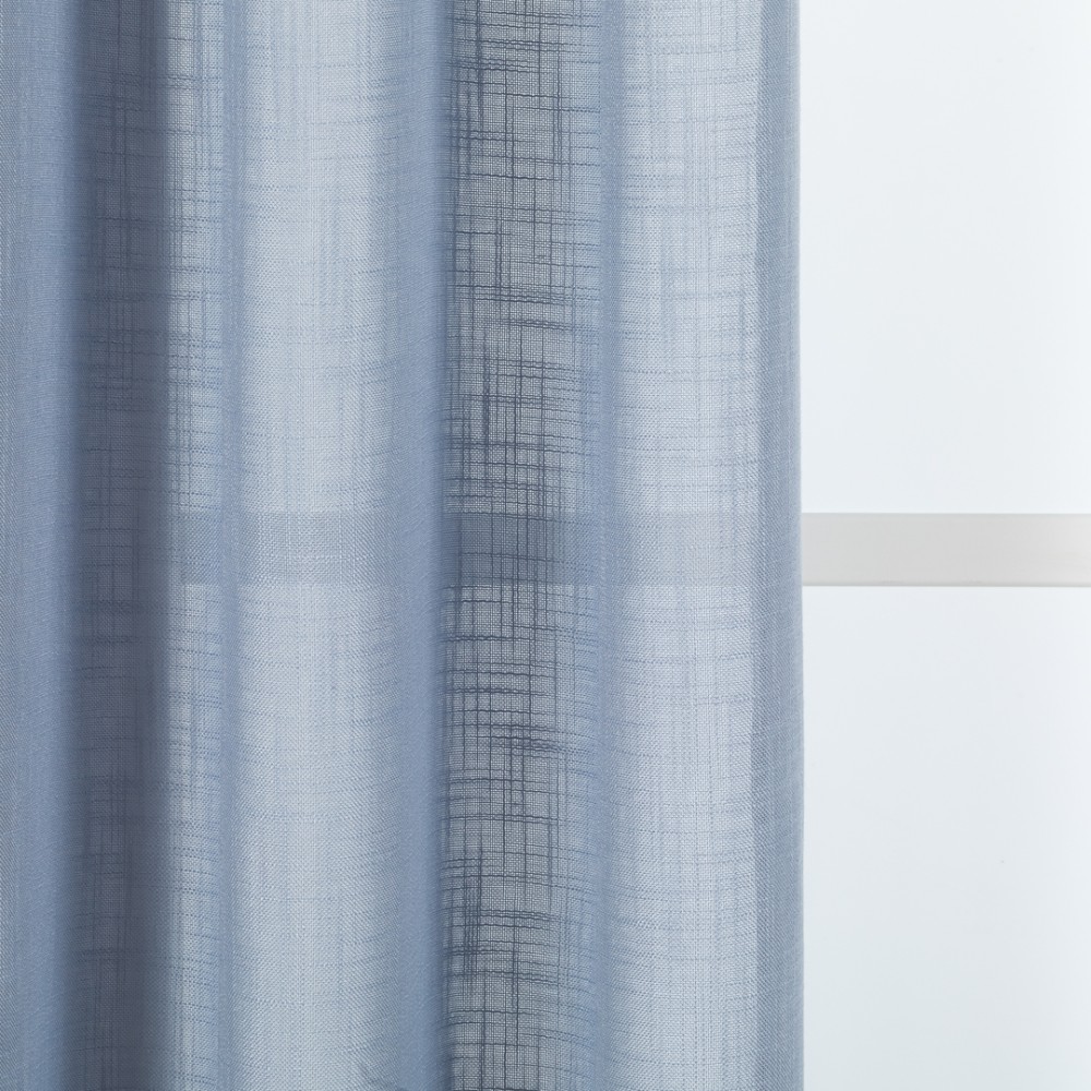 Cortina tipo visillo rústico translúcido de textura mate con pequeñas gatas verticales y horizontales en color liso.