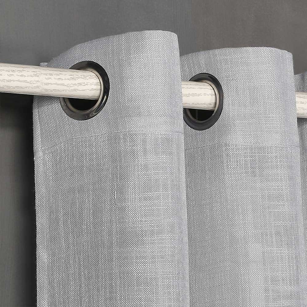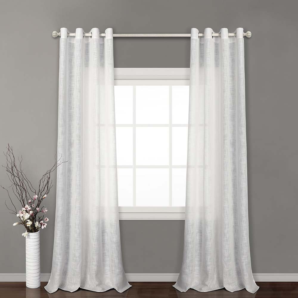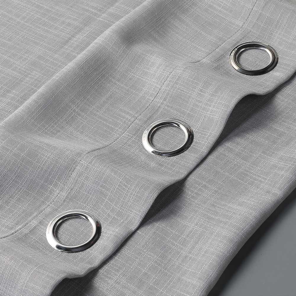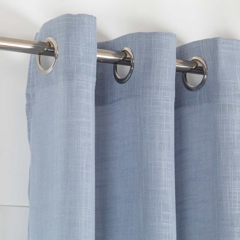 Cortina tipo visillo rústico translúcido de textura mate con pequeñas gatas verticales y horizontales en color liso.