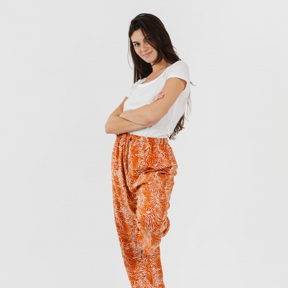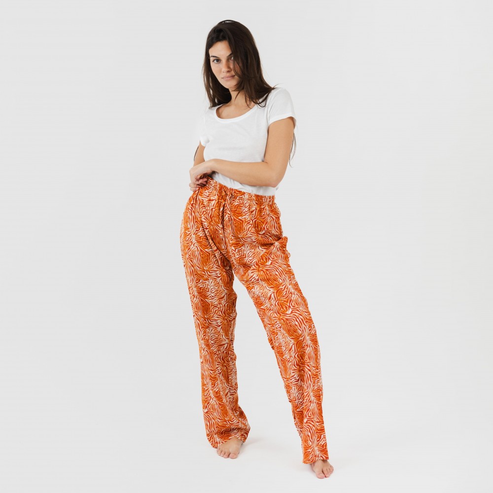 Pantalón largo fluido con cinturilla elástica y cordón ajustable, cómodo y ligero.