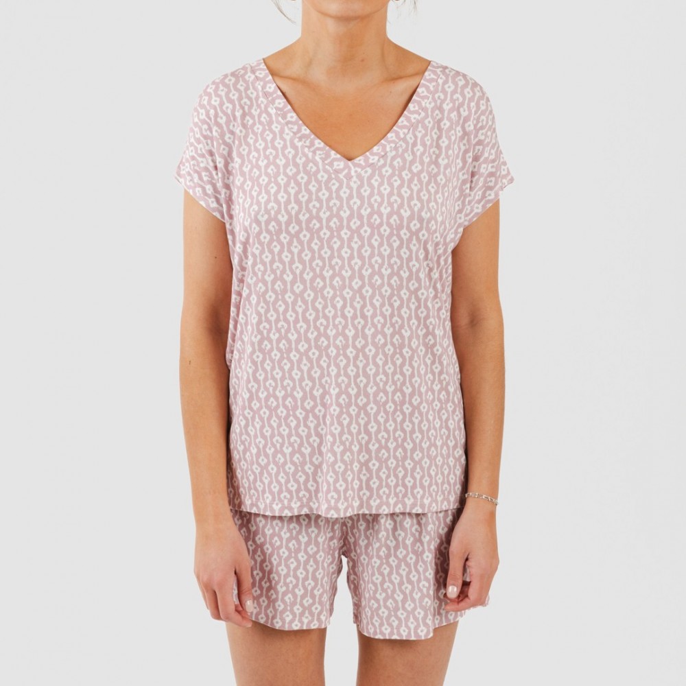 Pijama corto manga fluida viscosa mujer Ellene rosa palo