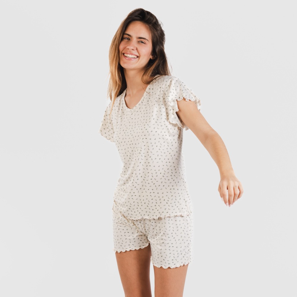 Pijama de manga corta mujer soft modelo Iris natural.