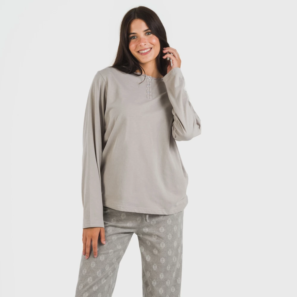 Pijama largo de mujer modelo Garbo gris mezcliyado.