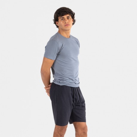 Chándal formado por dos piezas, una camiseta básica de manga corta y un pantalón corto tipo jogger con bolsillos, cinturilla elástica y cordón ajustable.