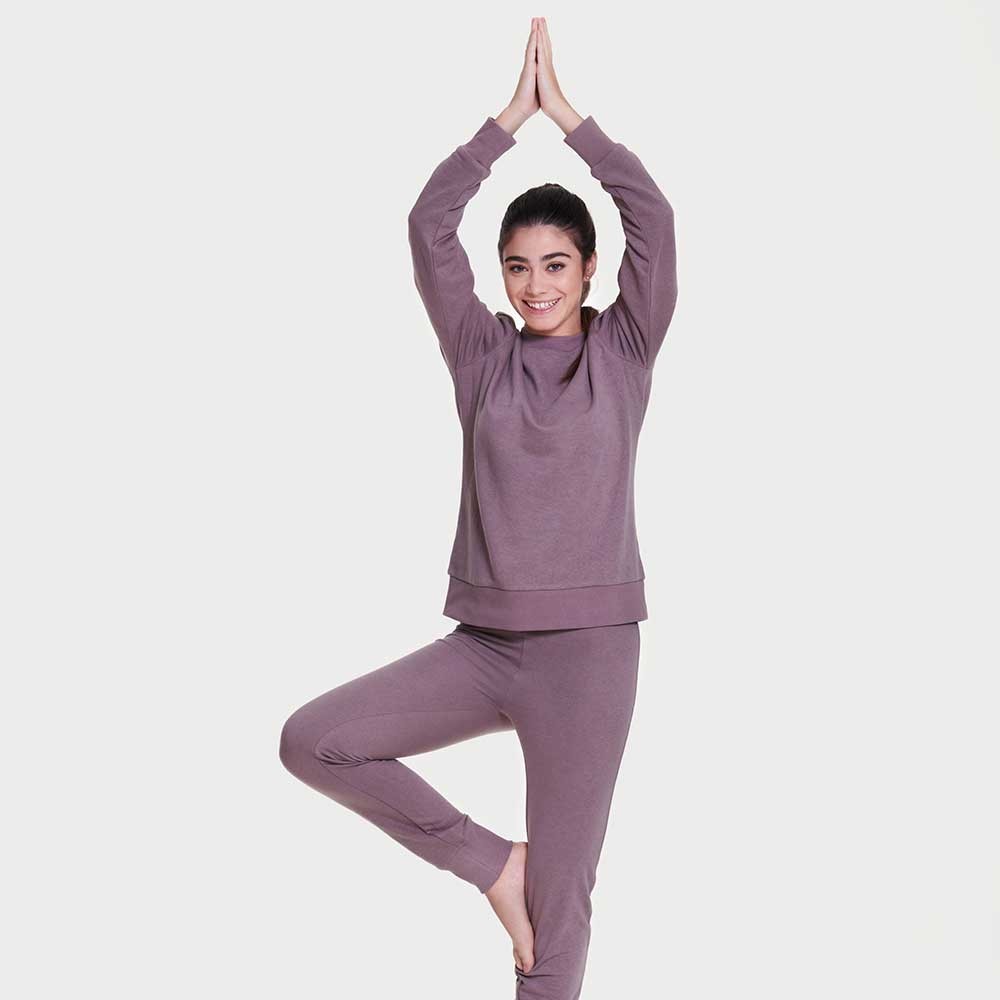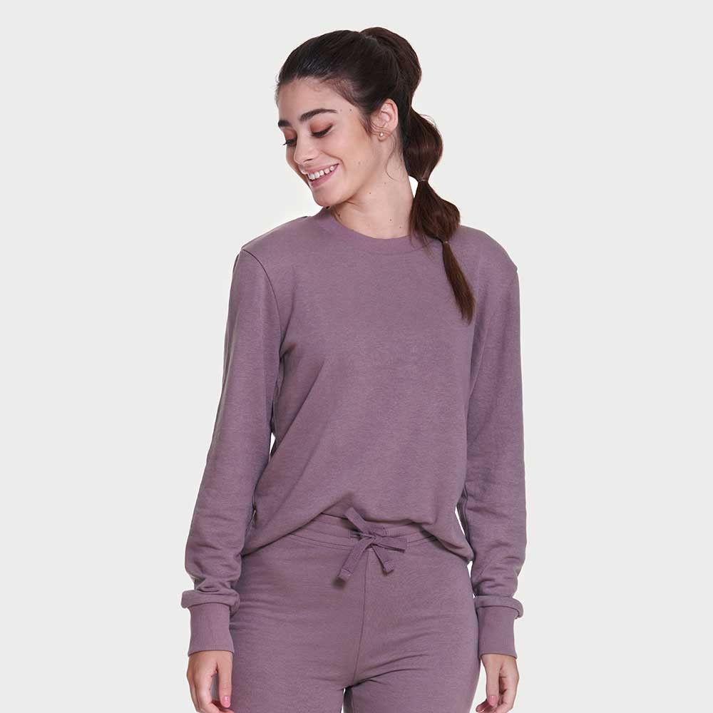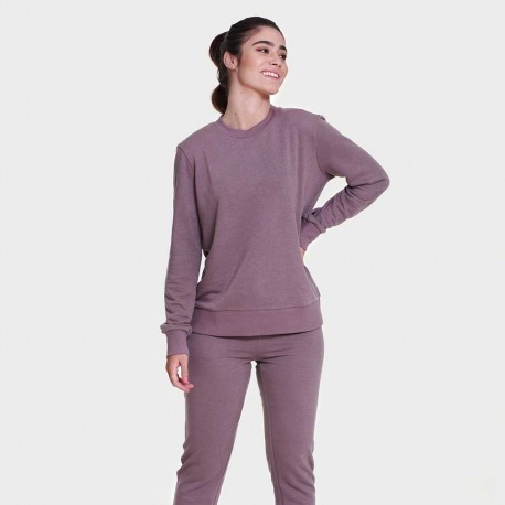 Chándal formado por dos piezas, una sudadera de manga larga con cuello redondo y puño en la manga y, un pantalón con la cintura elástica ajustable por un lazo y puño elástico en el bajo.