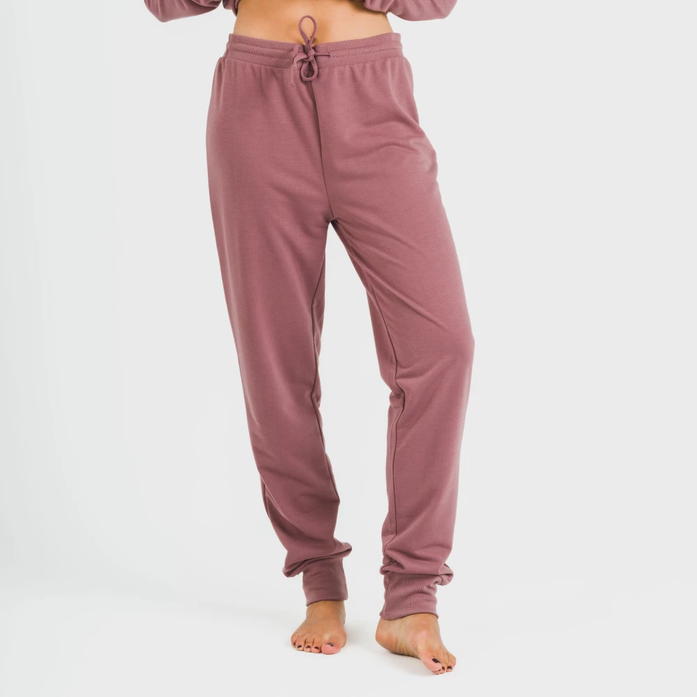 Pantalón holgado con cintura ajustable, cordón y puños elásticos en el bajo.