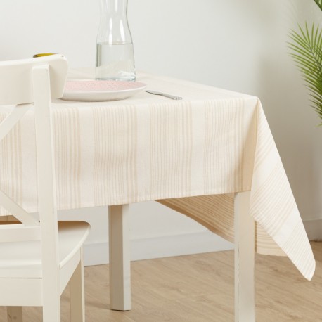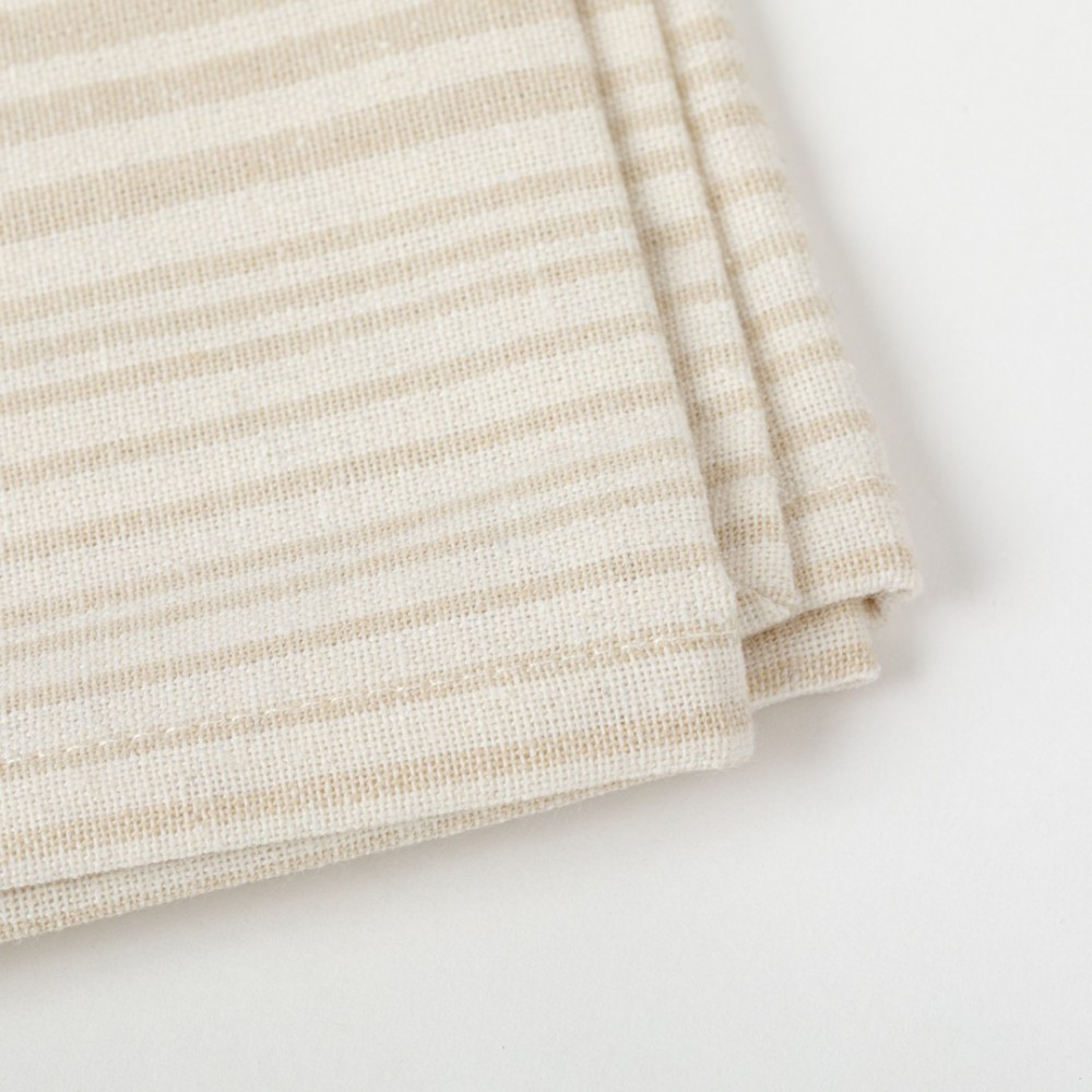 Presenta un diseño elegante y sencillo de finas rayas en tonos arena sobre un fondo blanco natural, sencillez y elegancia que no pasará desapercibido.