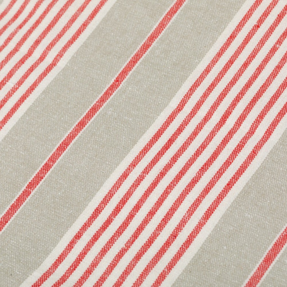 Presenta un diseño elegante y sencillo de finas rayas en tonos rojo y blanco sobre un fondo arena, sencillez y elegancia que no pasará desapercibido.
