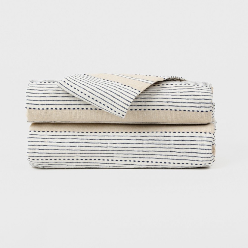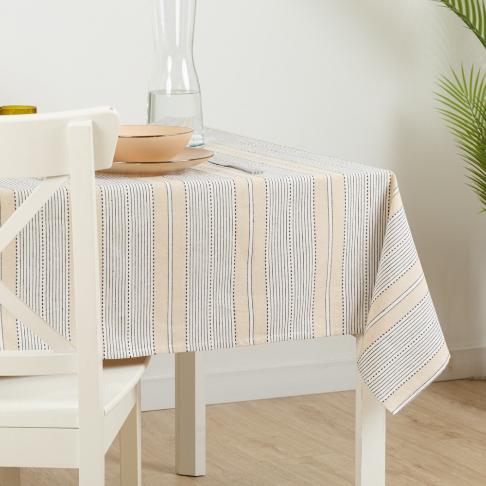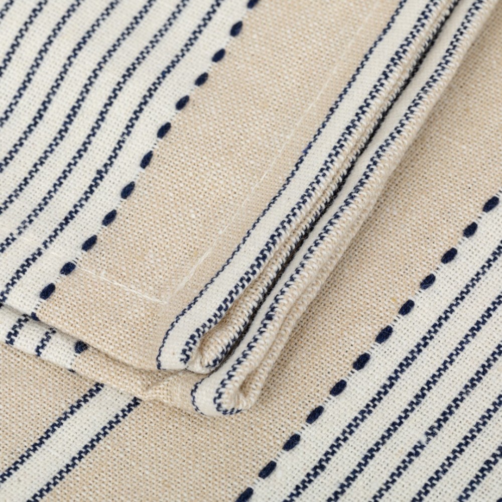 Presenta un diseño elegante y sencillo de finas rayas en tonos azul marino y arena sobre un fondo blanco, sencillez y elegancia que no pasará desapercibido.