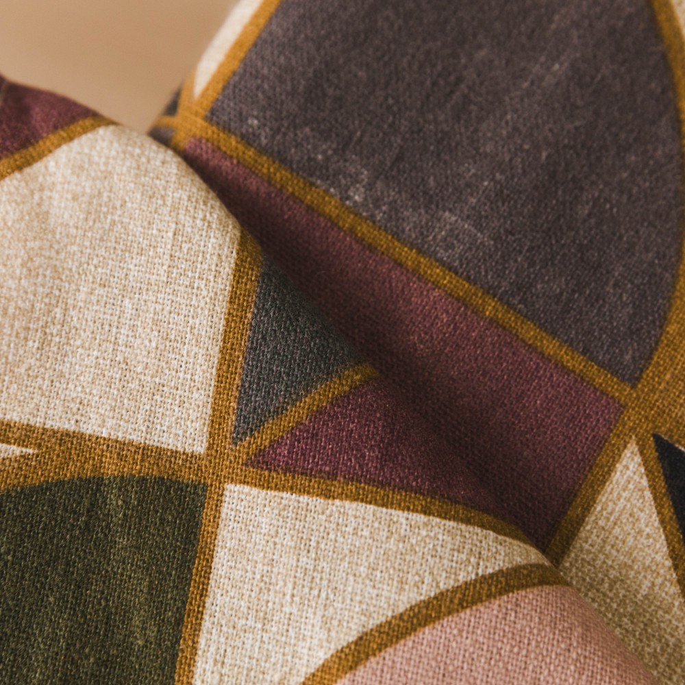 Cuenta con un diseño colorido de diferentes figuras geométricas en varios colores sobre un fondo natural. El complemento que no puede faltar, para dar el toque de elegancia a la vez que dar protección de las posibles salpicaduras.