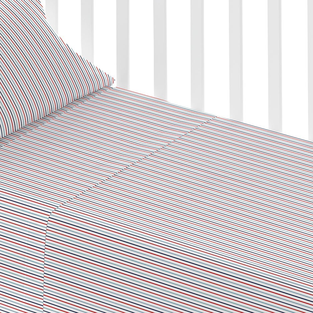 Juego de sábanas de cuna 100% algodón modelo Raya York azul marino.