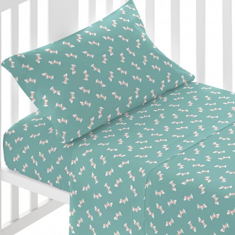 Juego de sábanas algodón Ponder verde azulado cuna