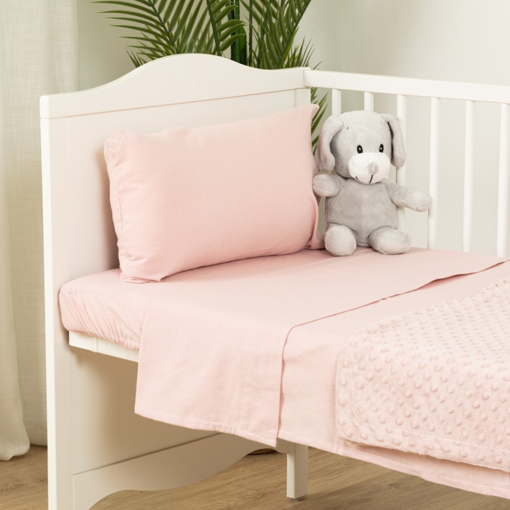 • Cuna (Cuna 60cm) : sábana encimera 100x150 cm, sábana bajera 60x120cm y funda de almohada 30x60cm