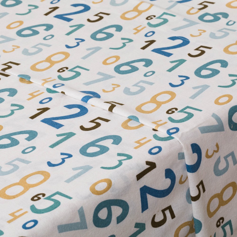 Sábanas y fundas de almohada de color blanco con estampado de diferentes números en varios colores en tejido de franela muy suave, ideales para el invierno por sus características térmicas.