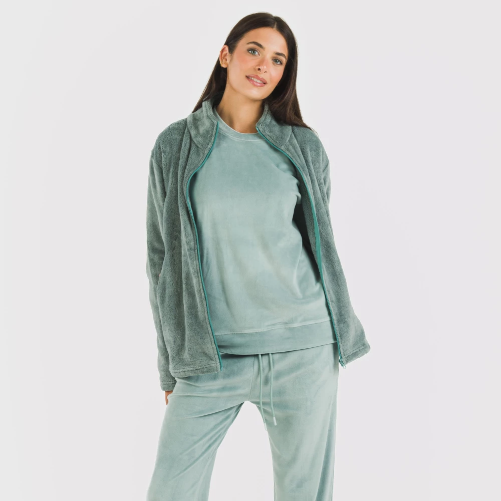 Nuestra sudadera de terciopelo es el complemento perfecto para el frío, además es más cómoda que una bata.