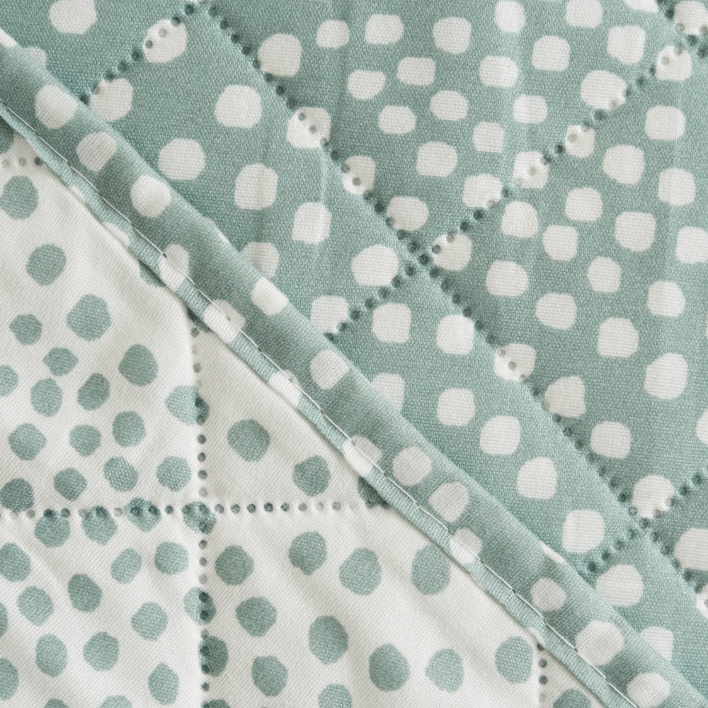 Presenta un estampado de espirales formadas por pequeños círculos blancos sobre fondo verde francés, la cara trasera presenta el mismo diseño pero a la inversa, espirales en un tono verde sobre fondo blanco.