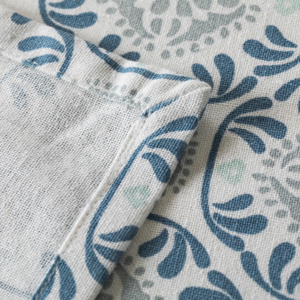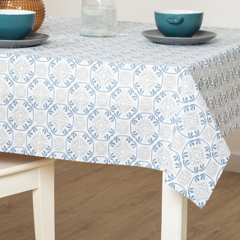 Cuenta con un diseño original y sencillo en tonos azules y grises sobre un fondo blanco. El complemento que no puede faltar para dar el toque de elegancia a la vez que dar protección de las posibles salpicaduras.