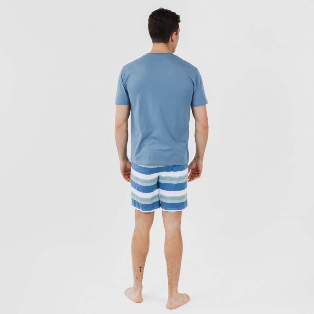 Pijama de hombre compuesto por camiseta de manga corta y pantalón corto de algodón.