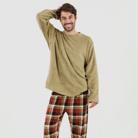 Pijama coral hombre con camiseta y pantalón largo calentito