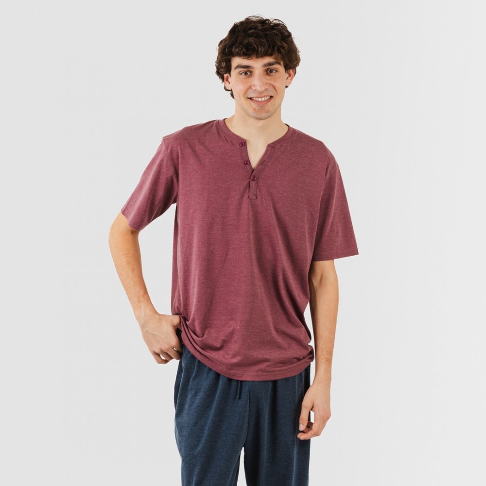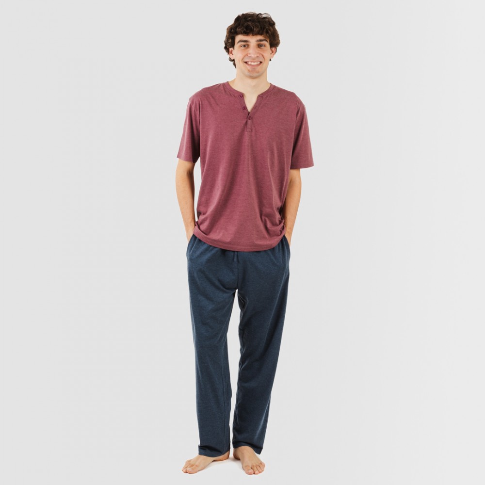 Pijama largo hombre de manga corta con botón burdeos - marino
