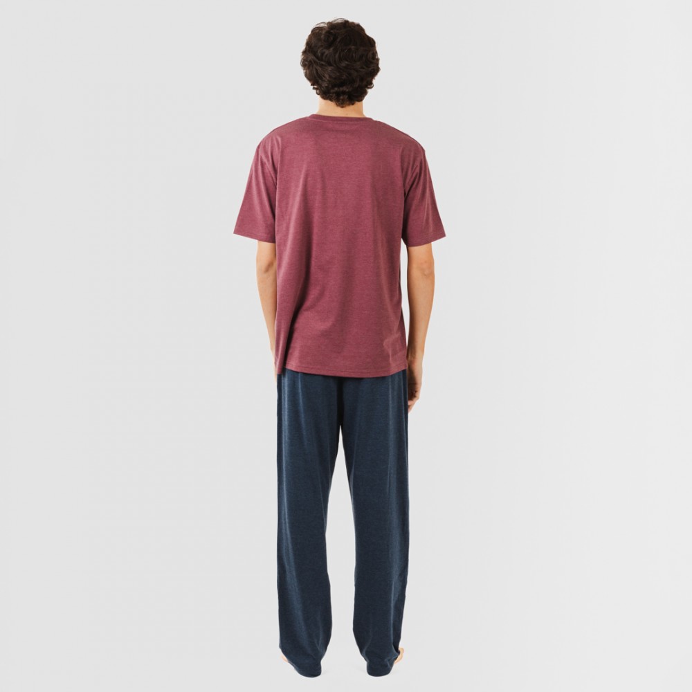 Pijama de hombre compuesto por camiseta de manga corta y pantalón largo.