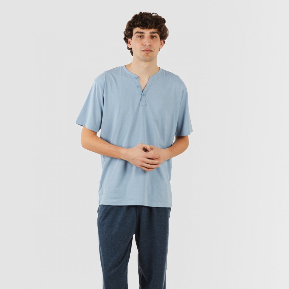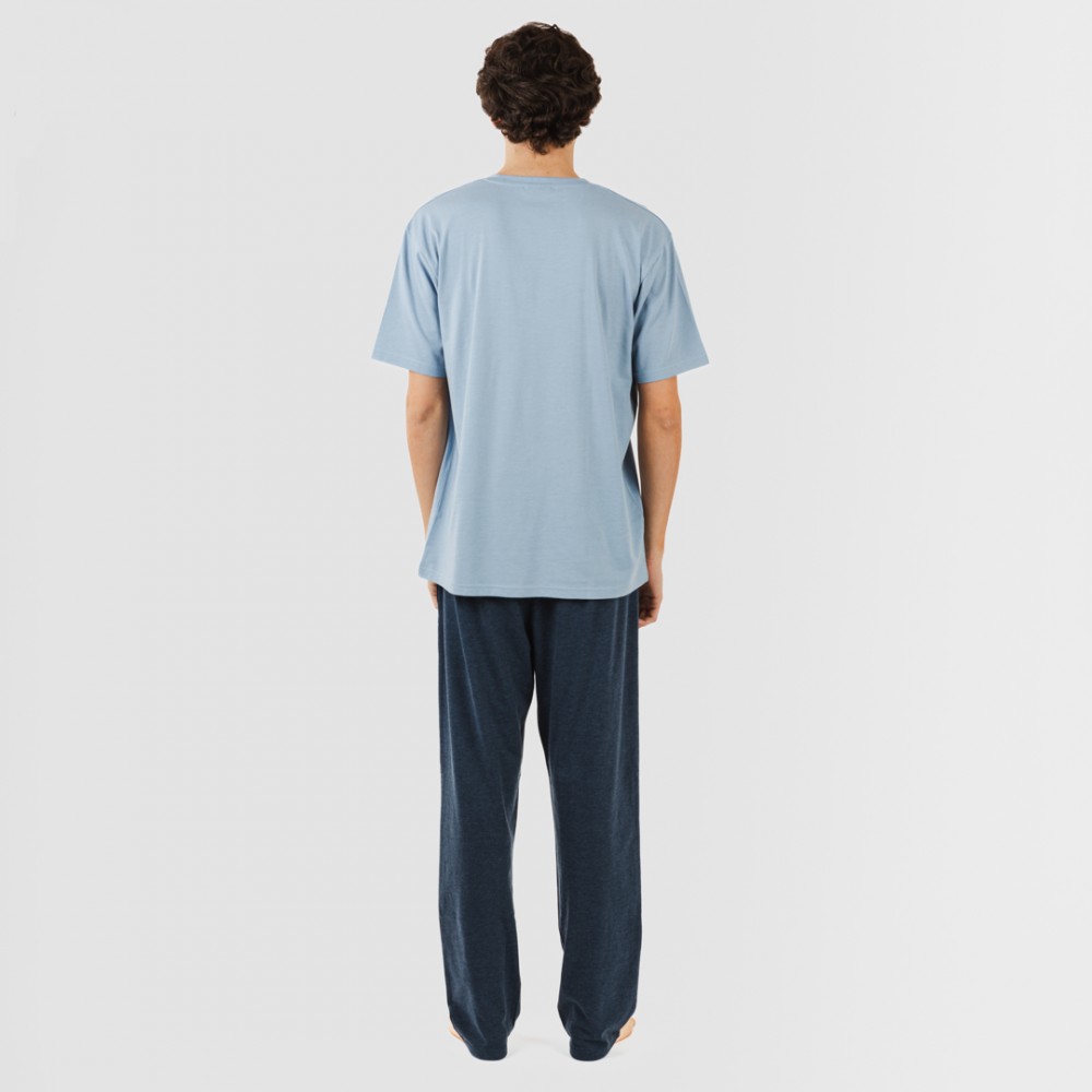 Pijama de hombre compuesto por camiseta de manga corta y pantalón largo.