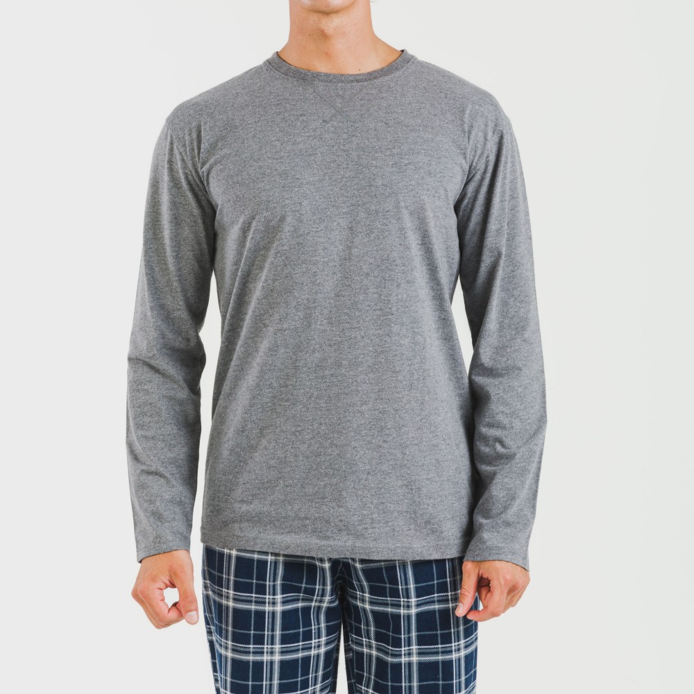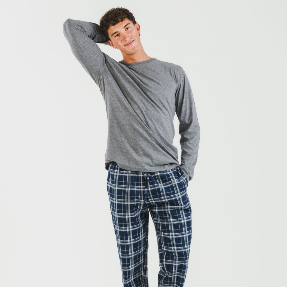 Pijama de hombre compuesto por camiseta de manga larga y pantalón largo de franela.
