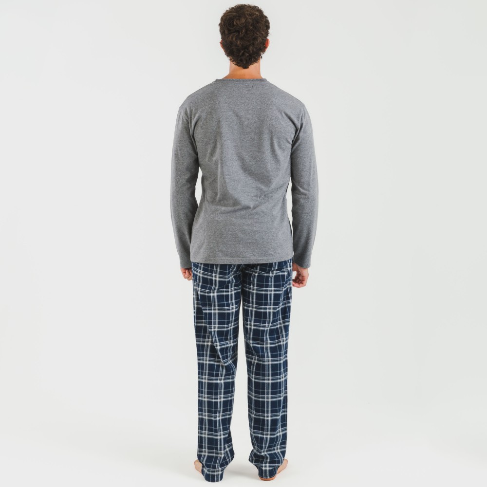 Pijama hombre franela Cuadro Brais gris mezcliyado