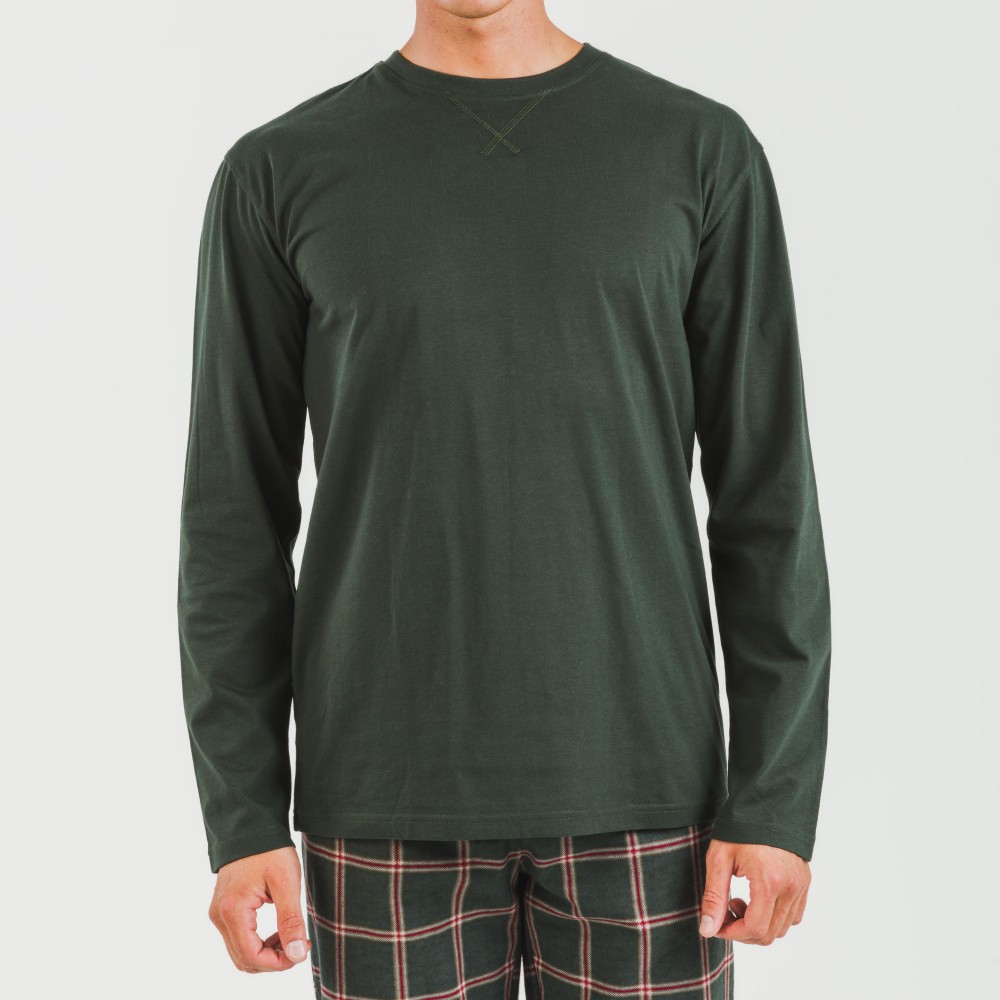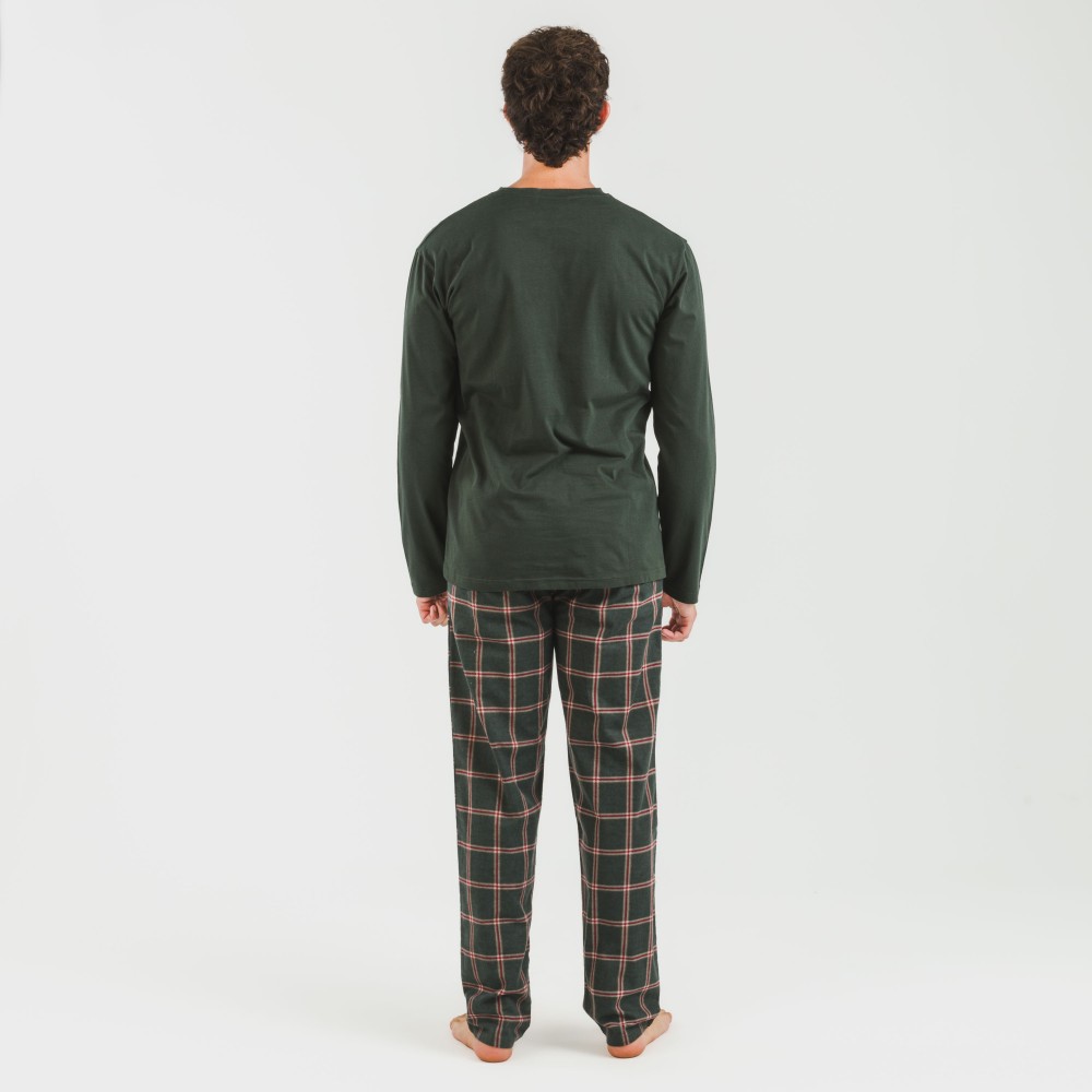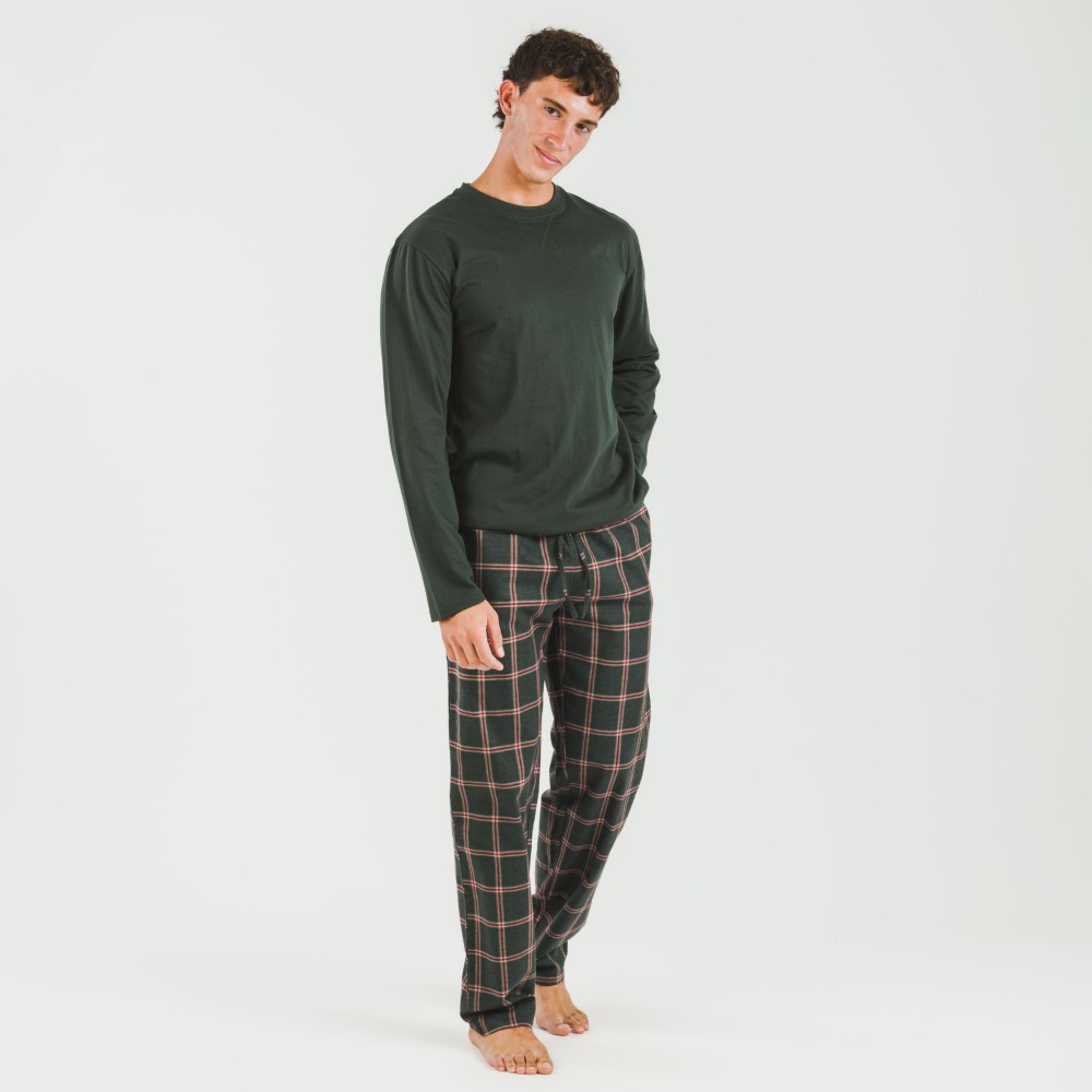 Pijama de hombre compuesto por camiseta de manga larga y pantalón largo de franela.