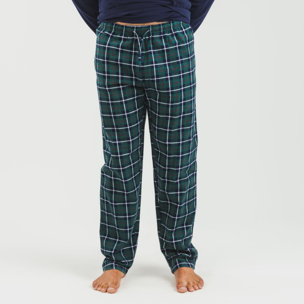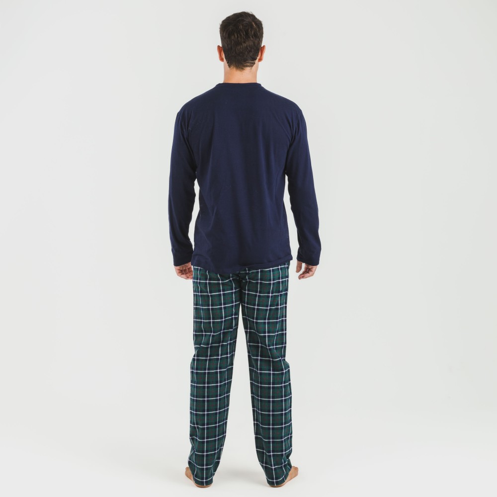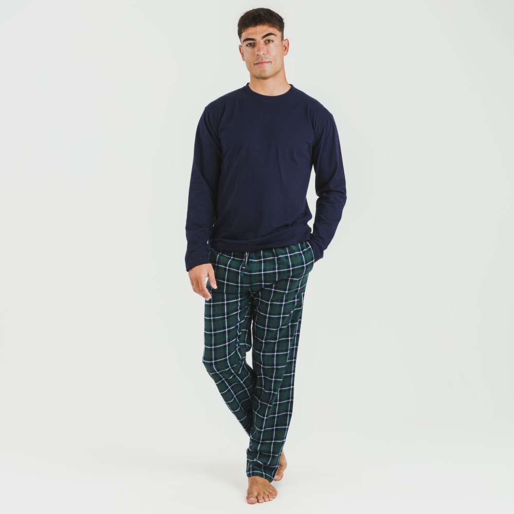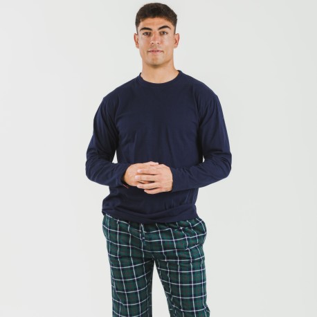 Pijama de hombre compuesto por camiseta de manga larga y pantalón largo de franela.