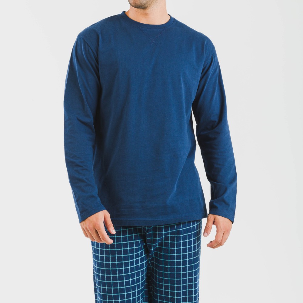Pijama de hombre compuesto por camiseta de manga larga y pantalón largo de franela.