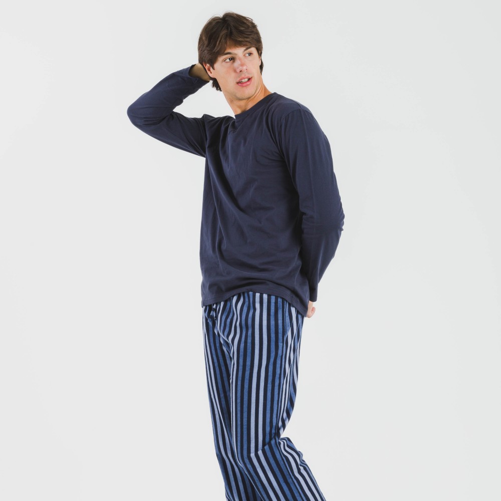 Pijama de hombre compuesto por camiseta de manga larga y pantalón largo de franela.