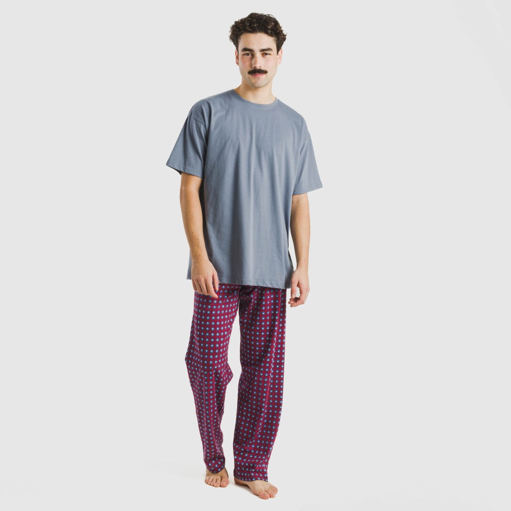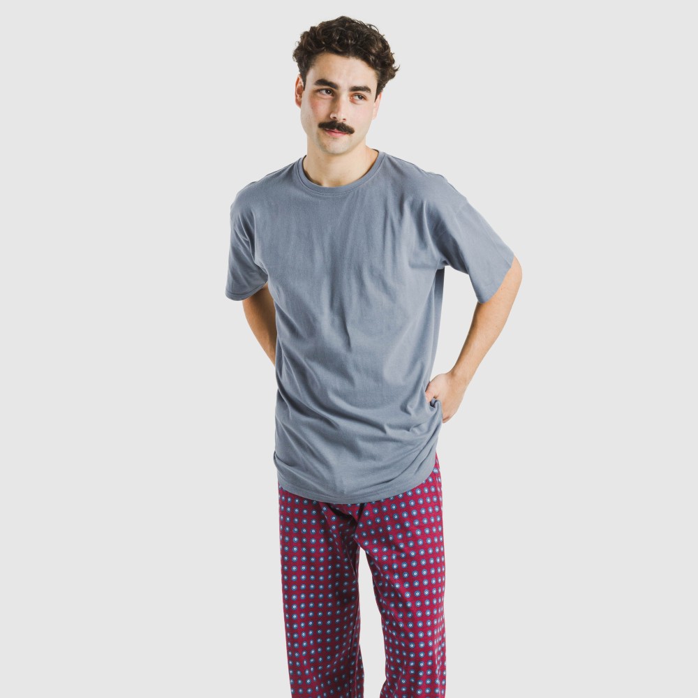 Pijama de hombre compuesto por camiseta de manga corta y pantalón largo.