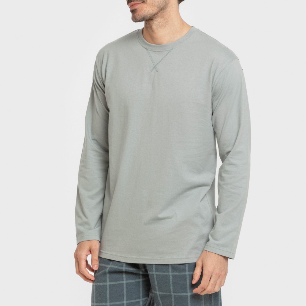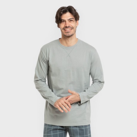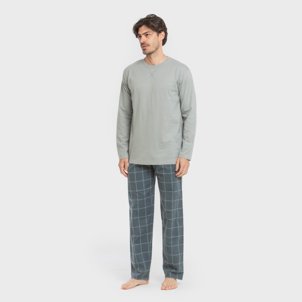 Pijama de hombre compuesto por camiseta de manga larga y pantalón largo de franela.