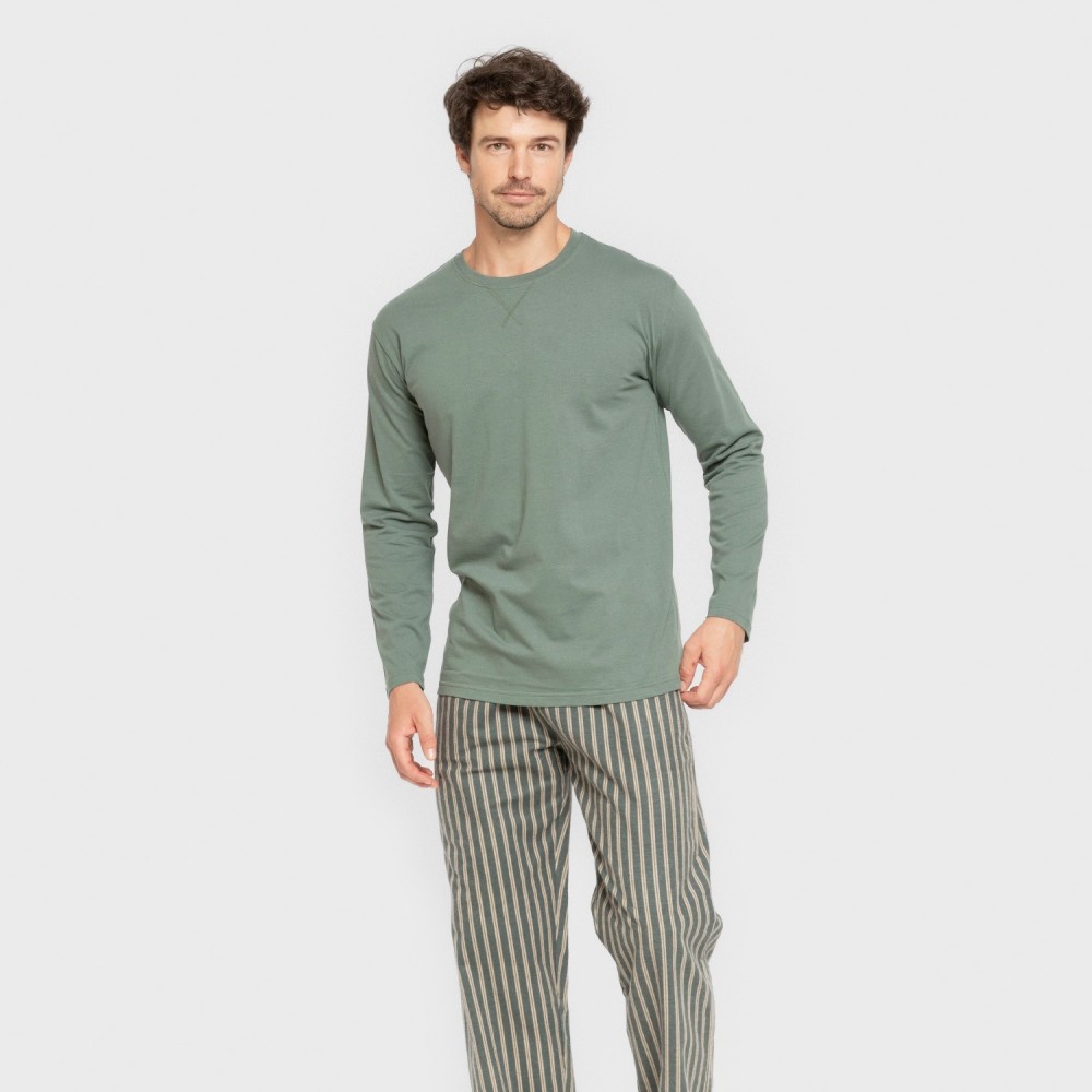 Pijama hombre franela Raya Marsellita verde - arena