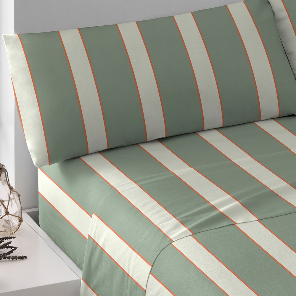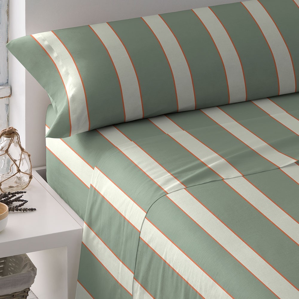 Juego de sábanas 100% algodón modelo Raya Marita verde seco.