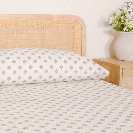 Juego de sábanas 100% algodón modelo Alhambra verde.