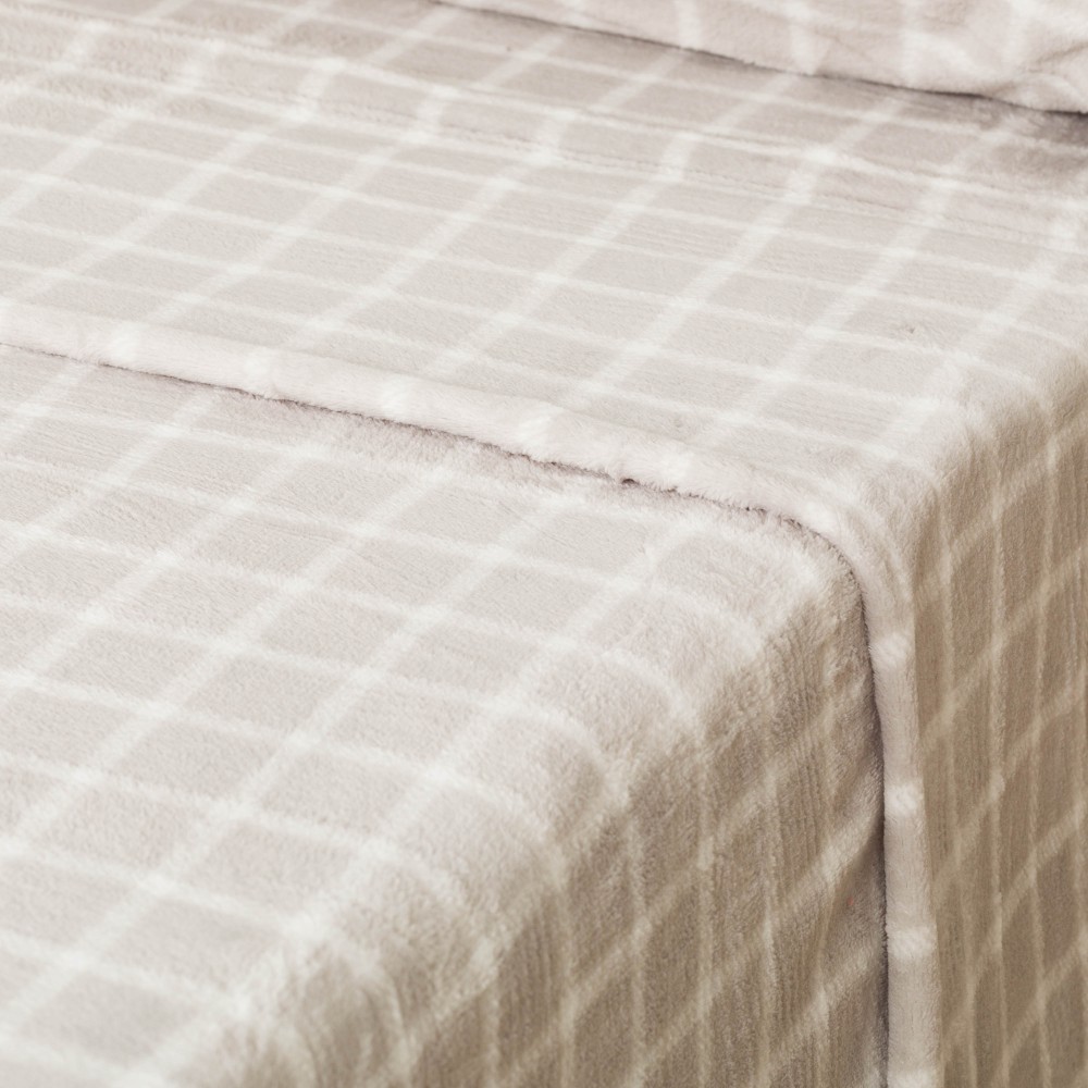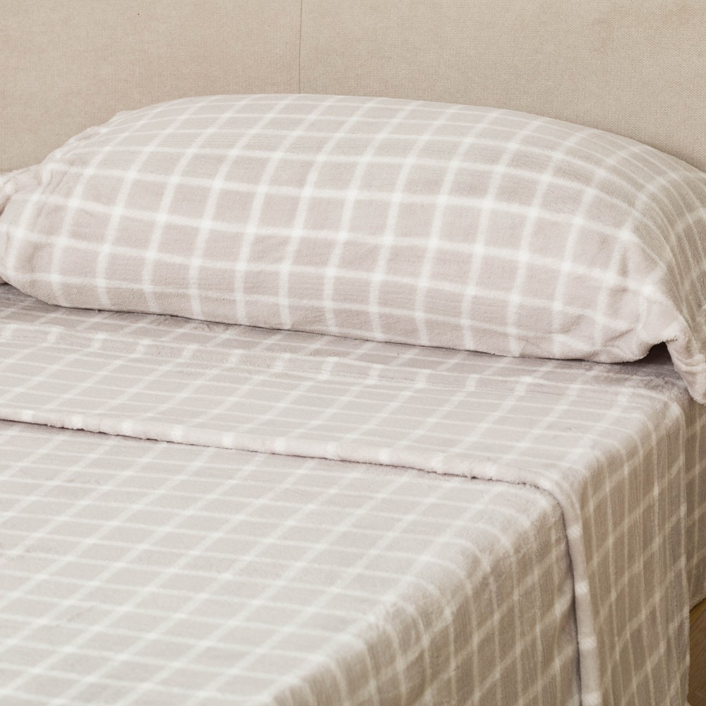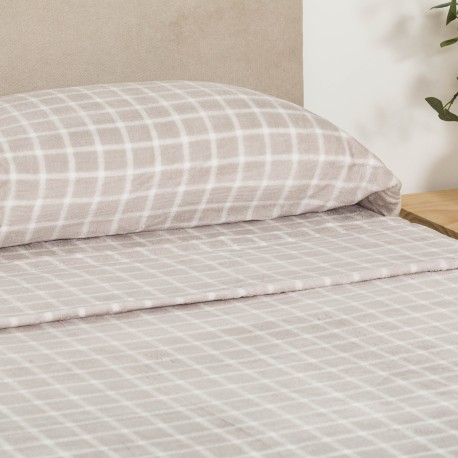 Juego de sábanas coralina modelo Cuadro Roberto gris.