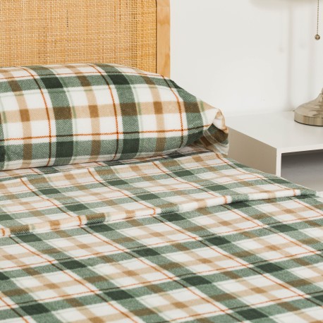 Juego de sábanas coralina modelo Cuadro Noric verde.