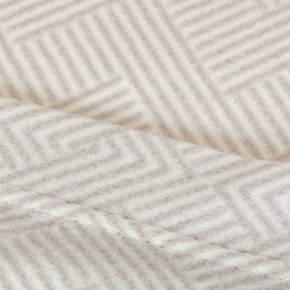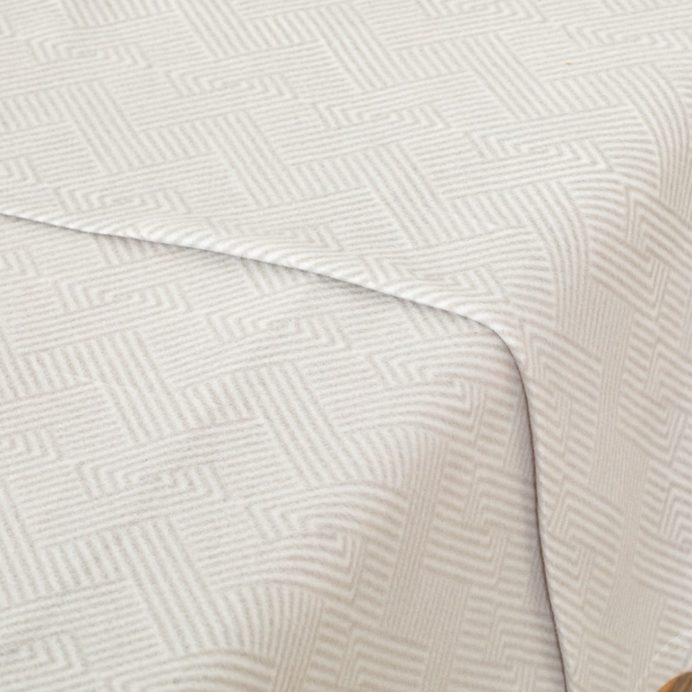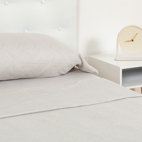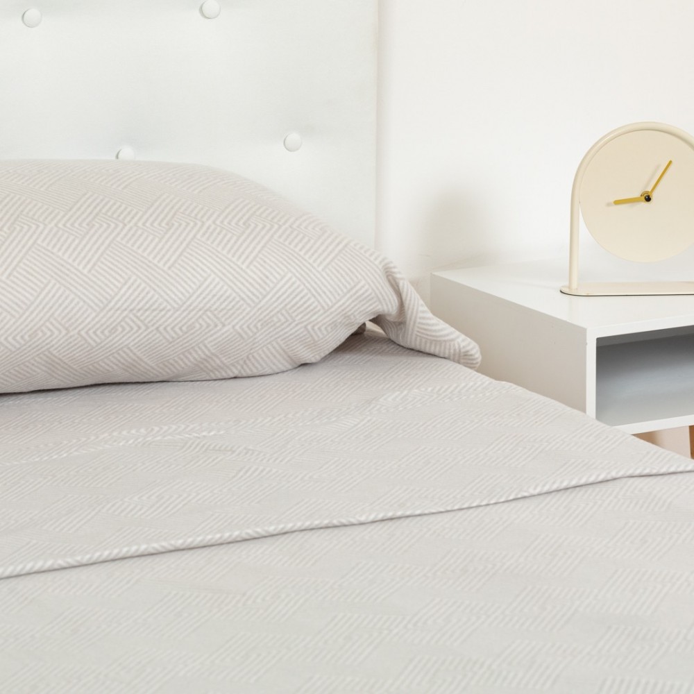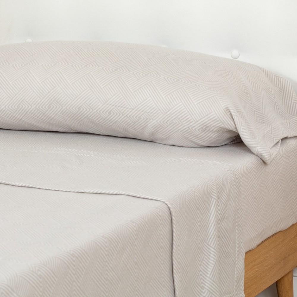 Sábanas y funda de almohada con diseño de zigzags en color gris perla sobre fondo blanco. Tacto suave y afelpado, ideales para el invierno por sus características térmicas. Tejido térmico que aportará color y confort a su cama.
