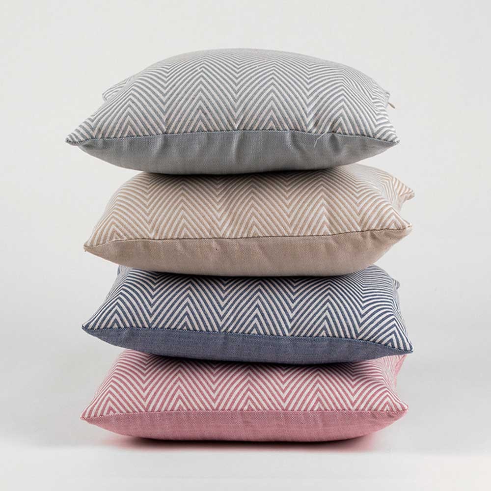 Diseño original y colorido con zigzags en tonos rosa sobre base de color blanco, la cara trasera es de color rosa liso.